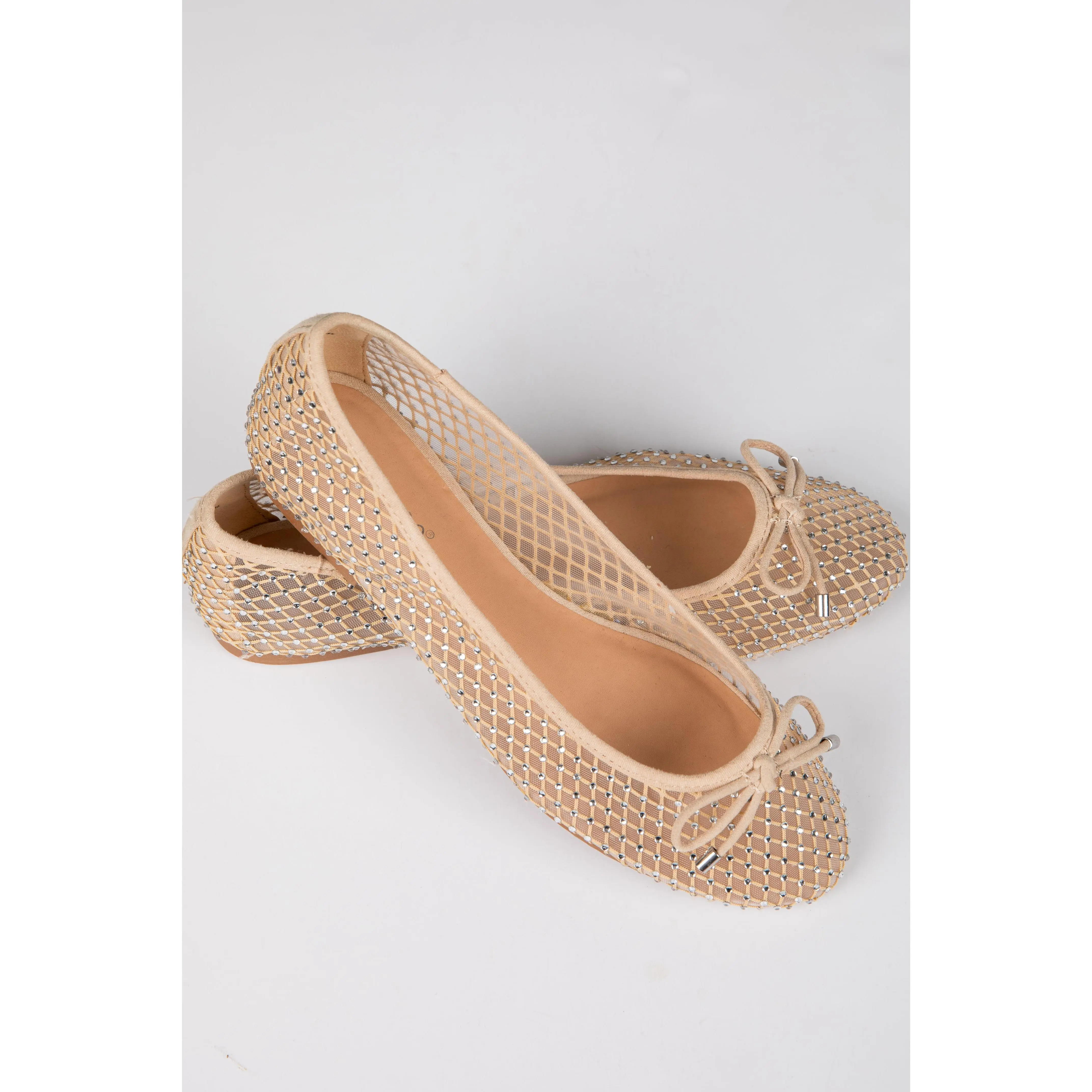 FINAL SALE - Had To Be There Nude Mesh Rhinestone Ballet Flats