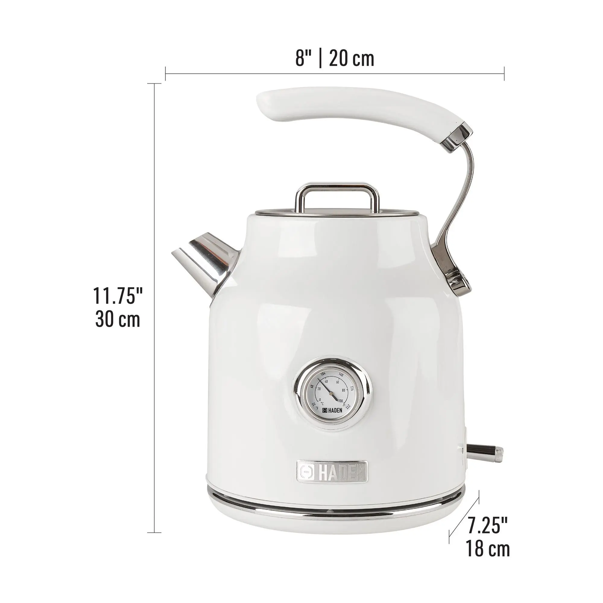Retro-inspired and uniquely designed, this 1.7-liter Dorset electric kettle features a temperature scale, water level gauge, and style that adds a splash of fun to tea time. From HADEN.