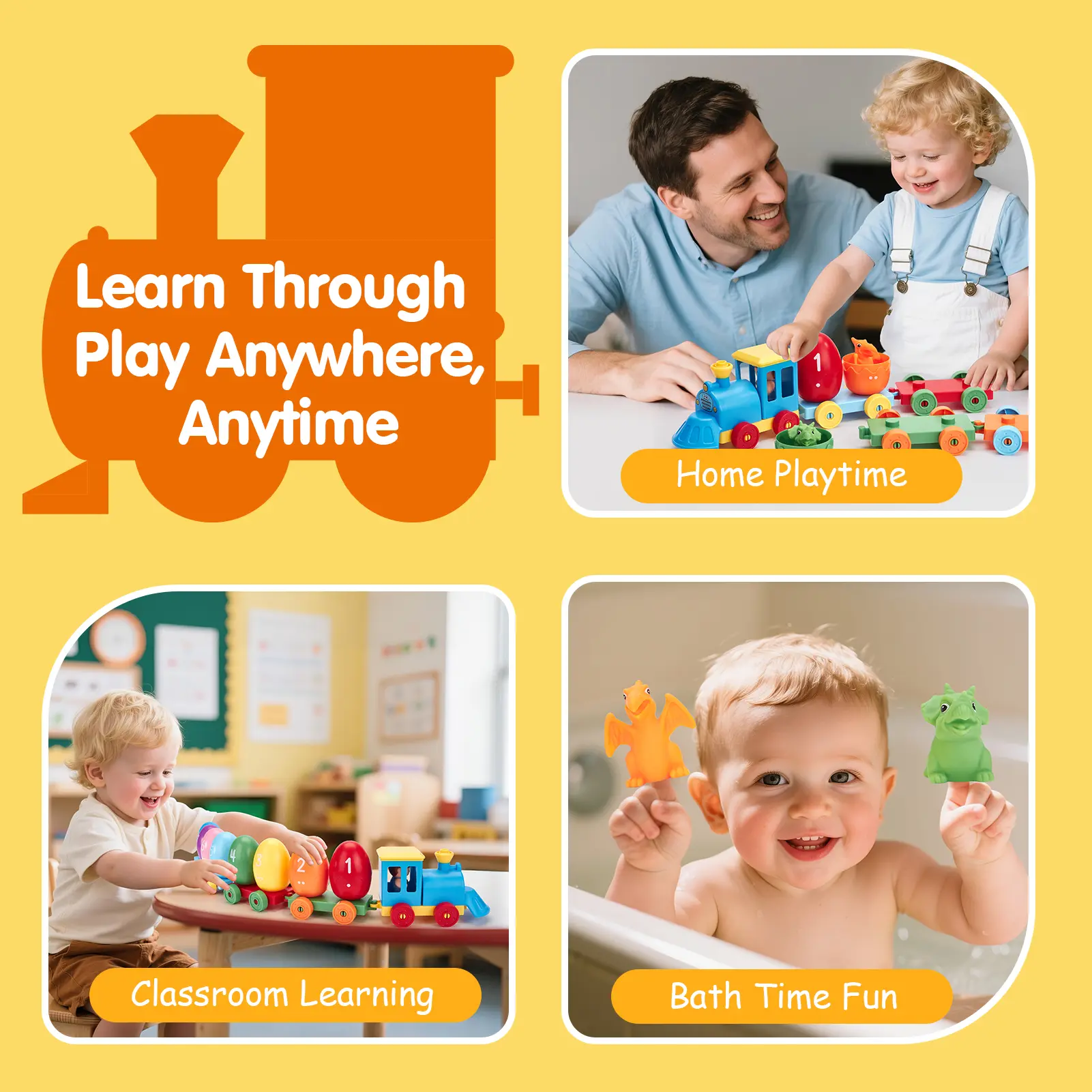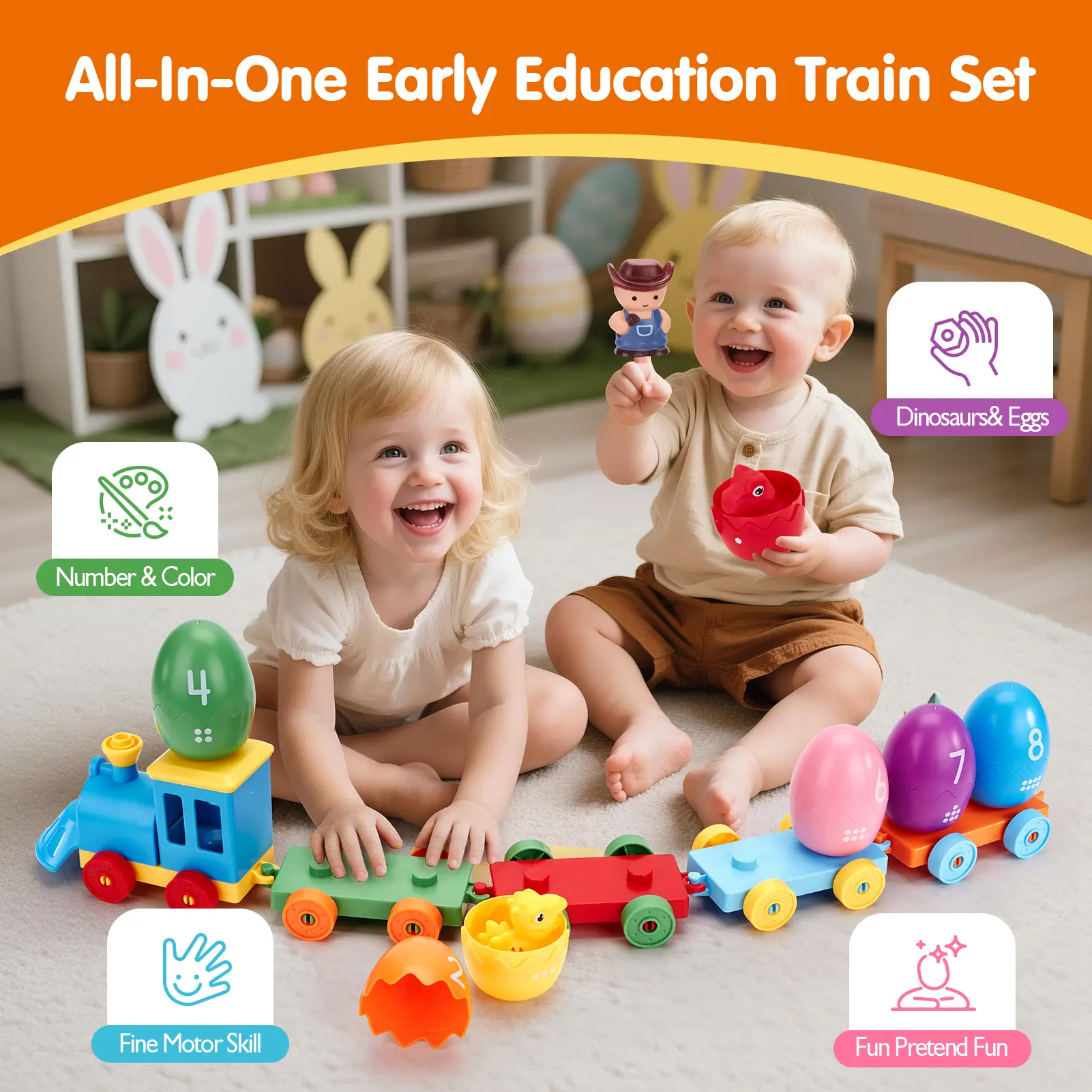 ·Dinosaur & Easter Egg Theme Immersion: Match each adorable dinosaur to its colour-coded Easter egg barn—perfect for developing early logic, colour recognition, and visual matching. The dinosaur + train + Easter egg theme keeps kids engaged longer, making learning intuitive and immersive.