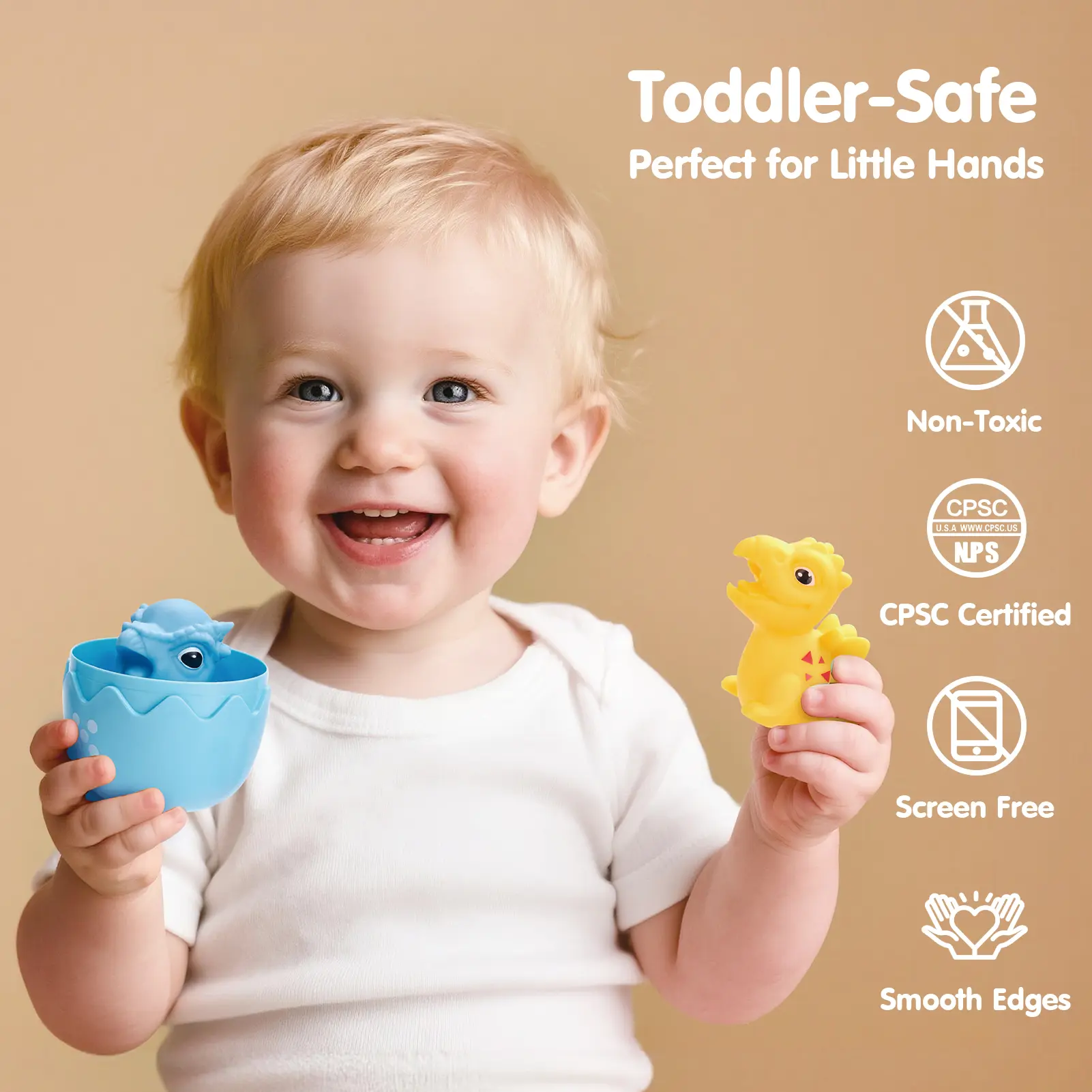 ·Safe & Bath-Ready Dinosaur Friends: Each dinosaur figure is made of soft silicone finger puppets, chew-safe, and waterproof—ideal for both dry play and bathtime fun. With durable, drop-resistant materials and rounded edges, it’s safe for teething and rough play.