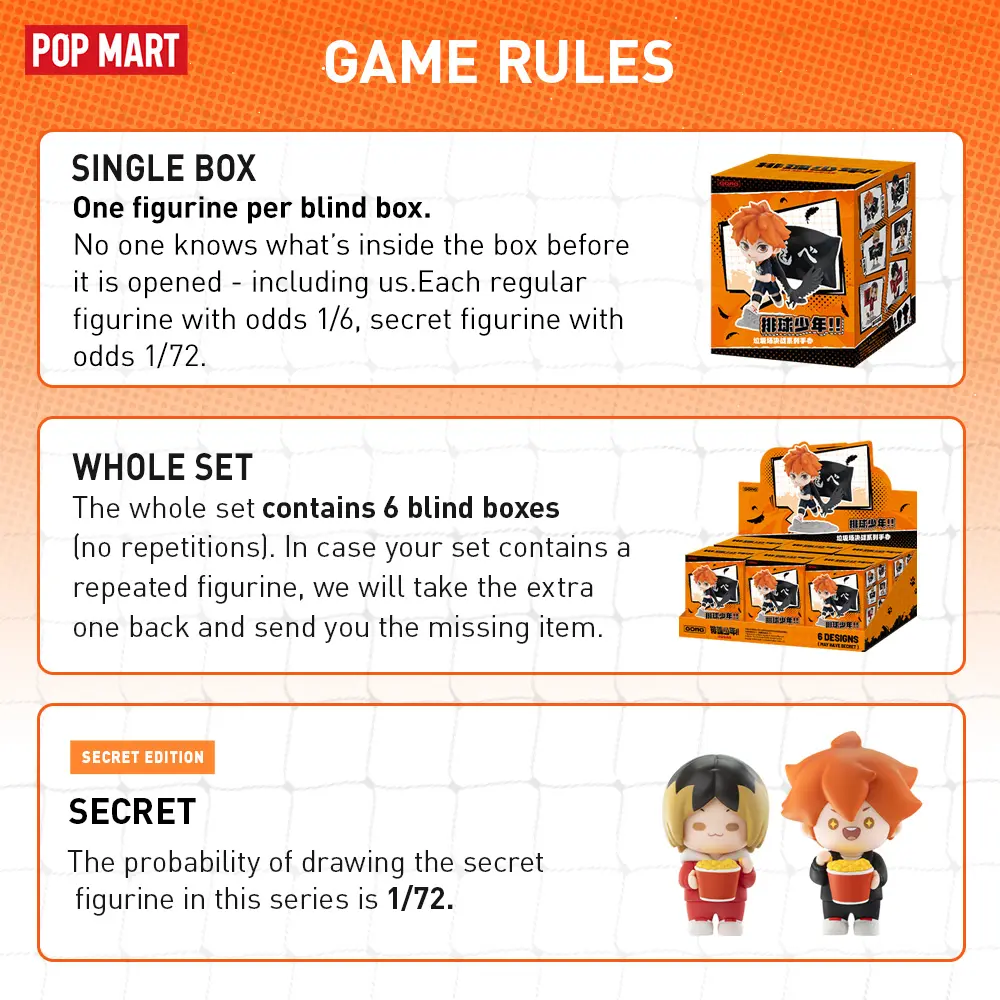 all three of my figures didn’t come with a part to hold the flag. Also, one of my boxes didn’t come with a figure at all when it was supposed to be nishinoya From the card. Pop Mart doesn’t do refunds so I’m out of luck