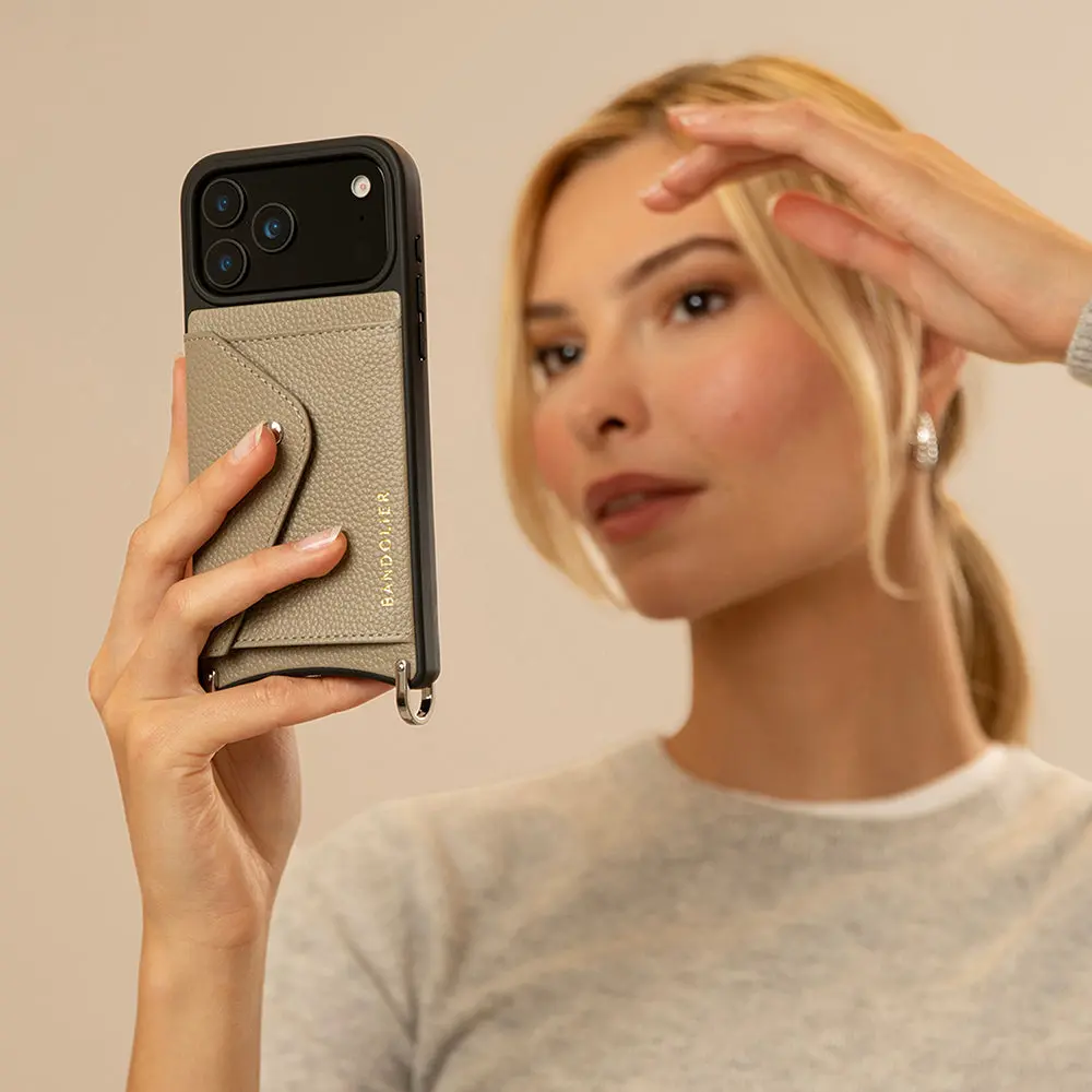 Hailey Side Slot Leather Crossbody Bandolier - Greige/Silver