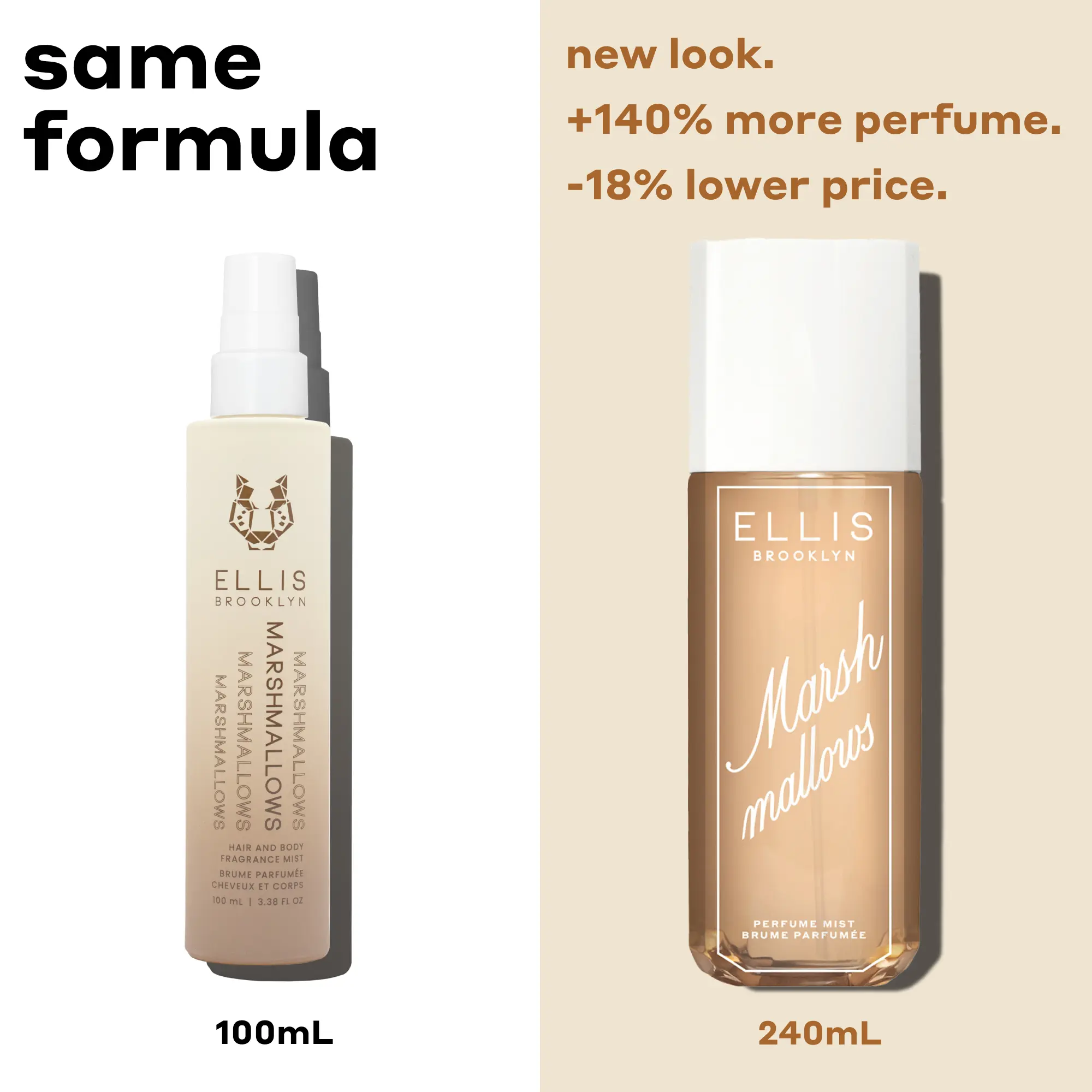 The same MARSHMALLOWS Perfume Mist you know and love, now with 140% more perfume, and an 18% lower price.