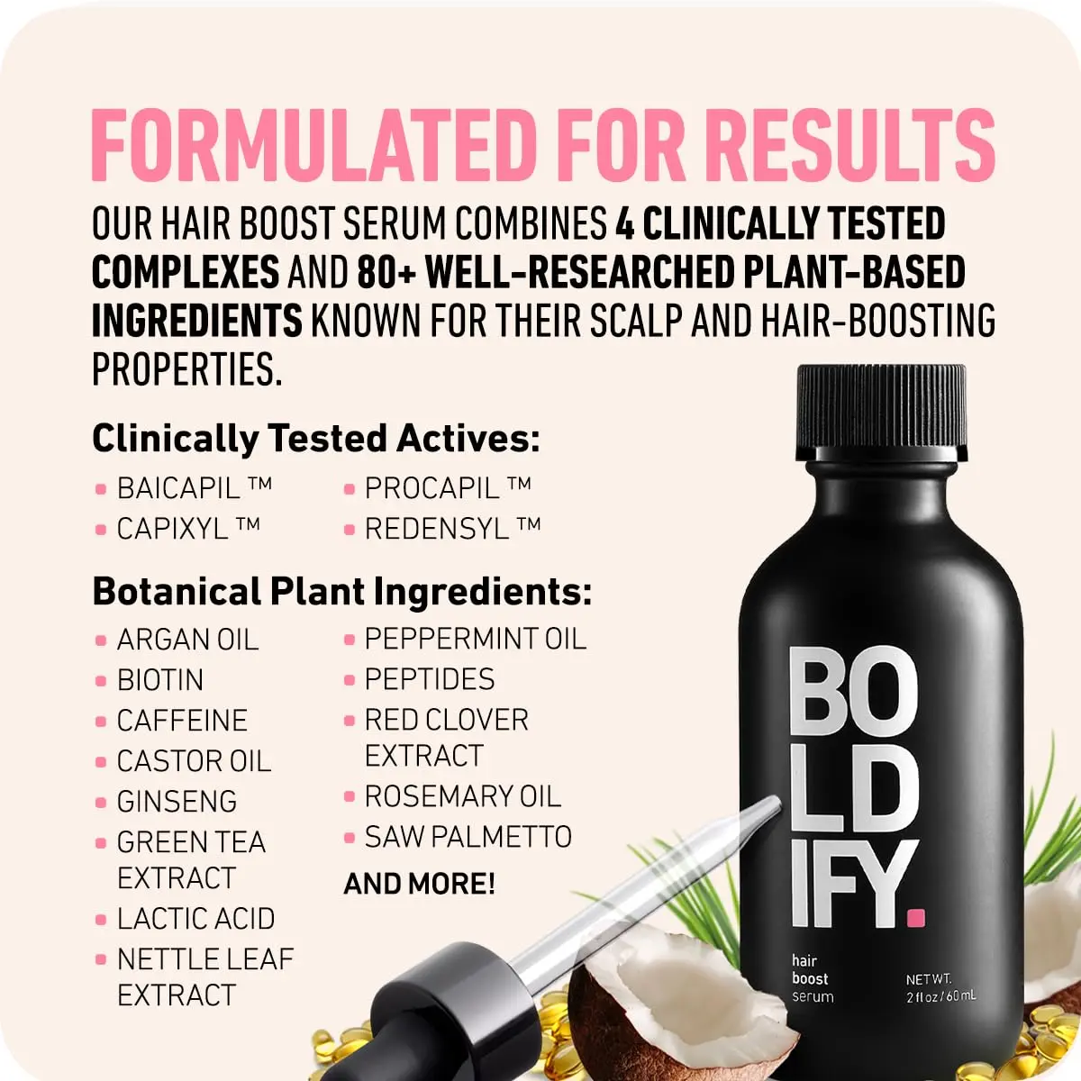 Elevate your hair health with BOLDIFY Hair Boost Serum! This plant-based formula supports healthy hair growth and scalp support. It's your key to maintaining a healthy hair appearance. Formulated to address hair growth and scalp needs, it delivers targeted benefits directly to your hair and scalp.