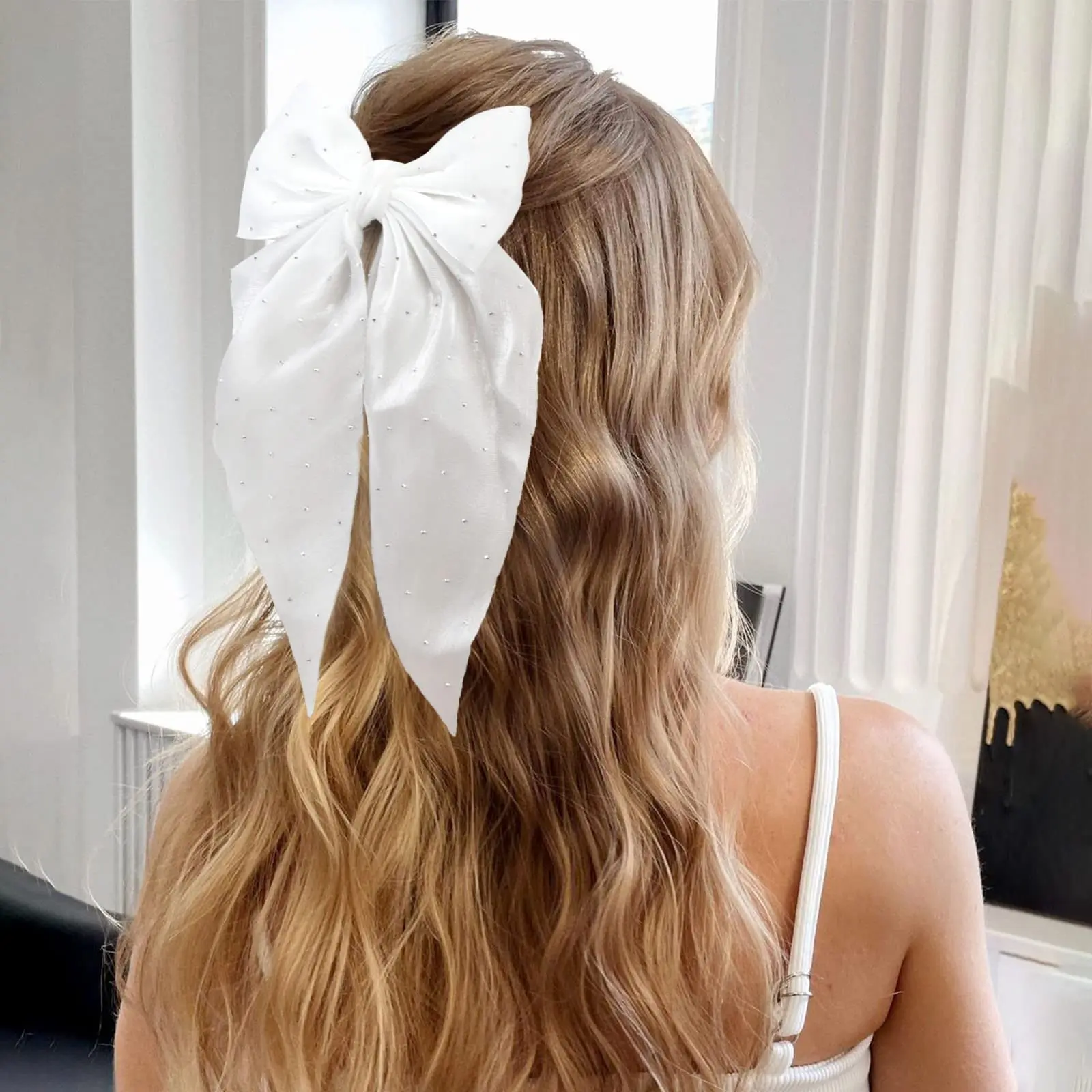 【HIGH QUALITY FABRIC】- Our large hair clip bows fabric is made of high quality fine tulle, the fabric is soft and smooth without burrs. The surface is inlaid with shiny rhinestonesMetal bobby pins are attached to the back of the hair bow. The bow hairpin is sturdy and durable.