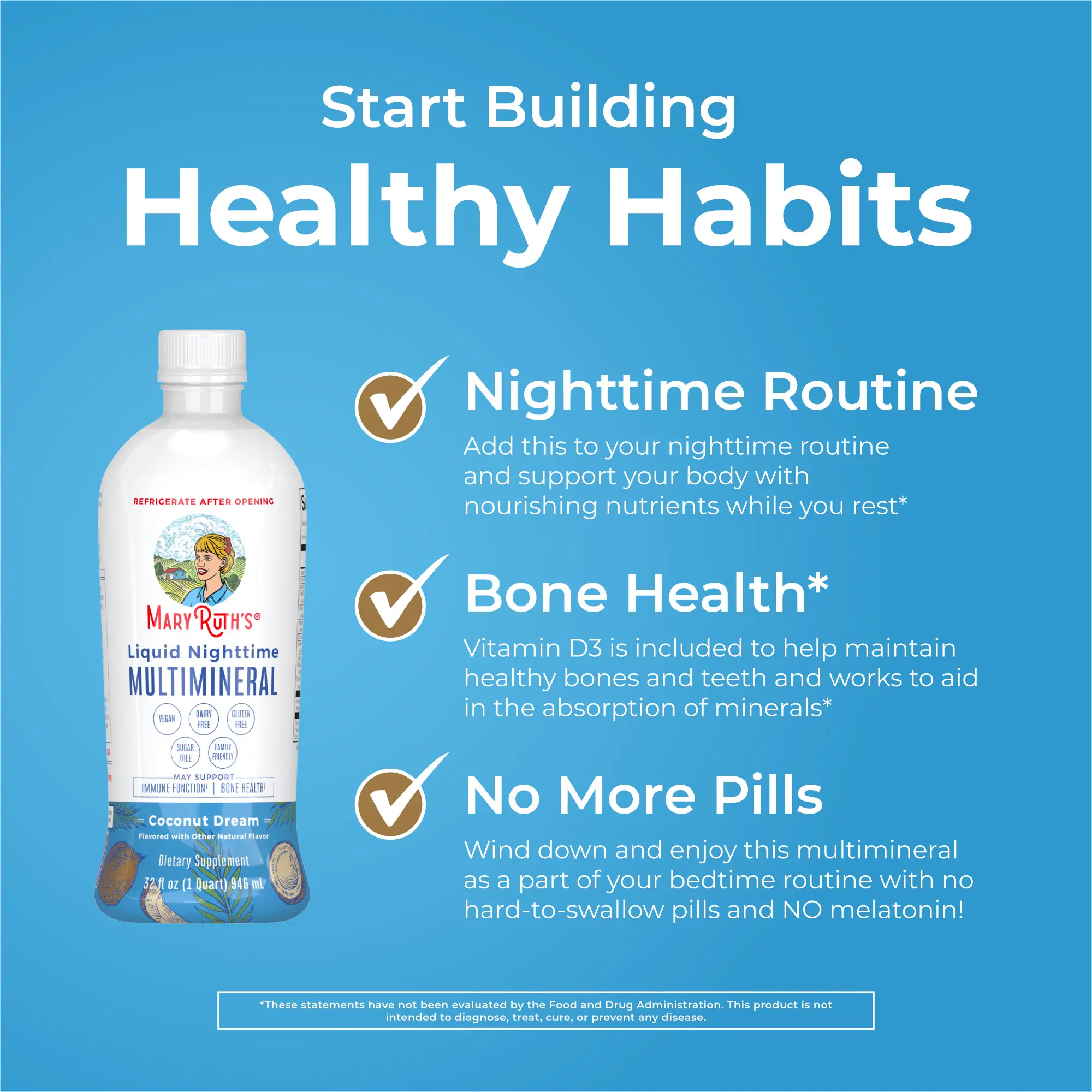 For Most Lifestyles: MaryRuth's Liquid Nighttime Multimineral is Non-GMO, Vegan, Made in a GMP Facility. Melatonin Free, Dairy Free, Gluten Free, Sugar Free. Formulated for Adults and Kids. Third Party Tested. Clean Label Project Certified. B Corp Certified.
