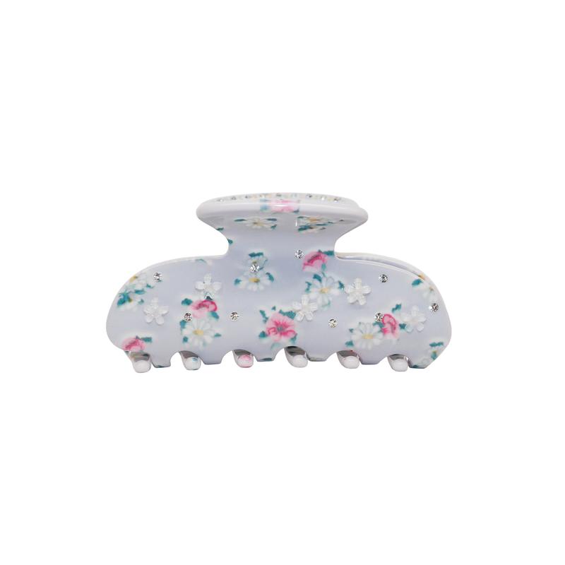Sweet as can be, this clip is made with beautiful tiny stones and flower print cellulose acetate. Designed with love and ultra-femininity in mind, our Sweetheart Clip will hold your hair from morning until night. Perfect for a low bun or half-up-half-down look.