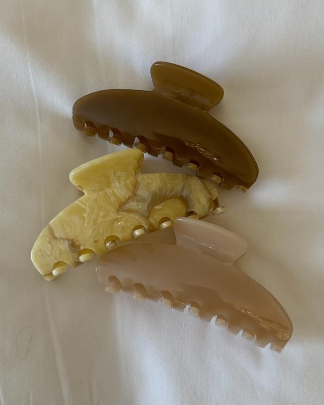 Our most-loved claw clip. Big enough to hold a full head of hair and functional enough to wear from morning to night. No pull, no headache, just good hair. Use this hair claw clip on dry or wet hair.