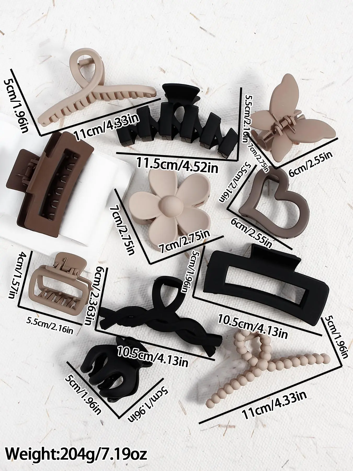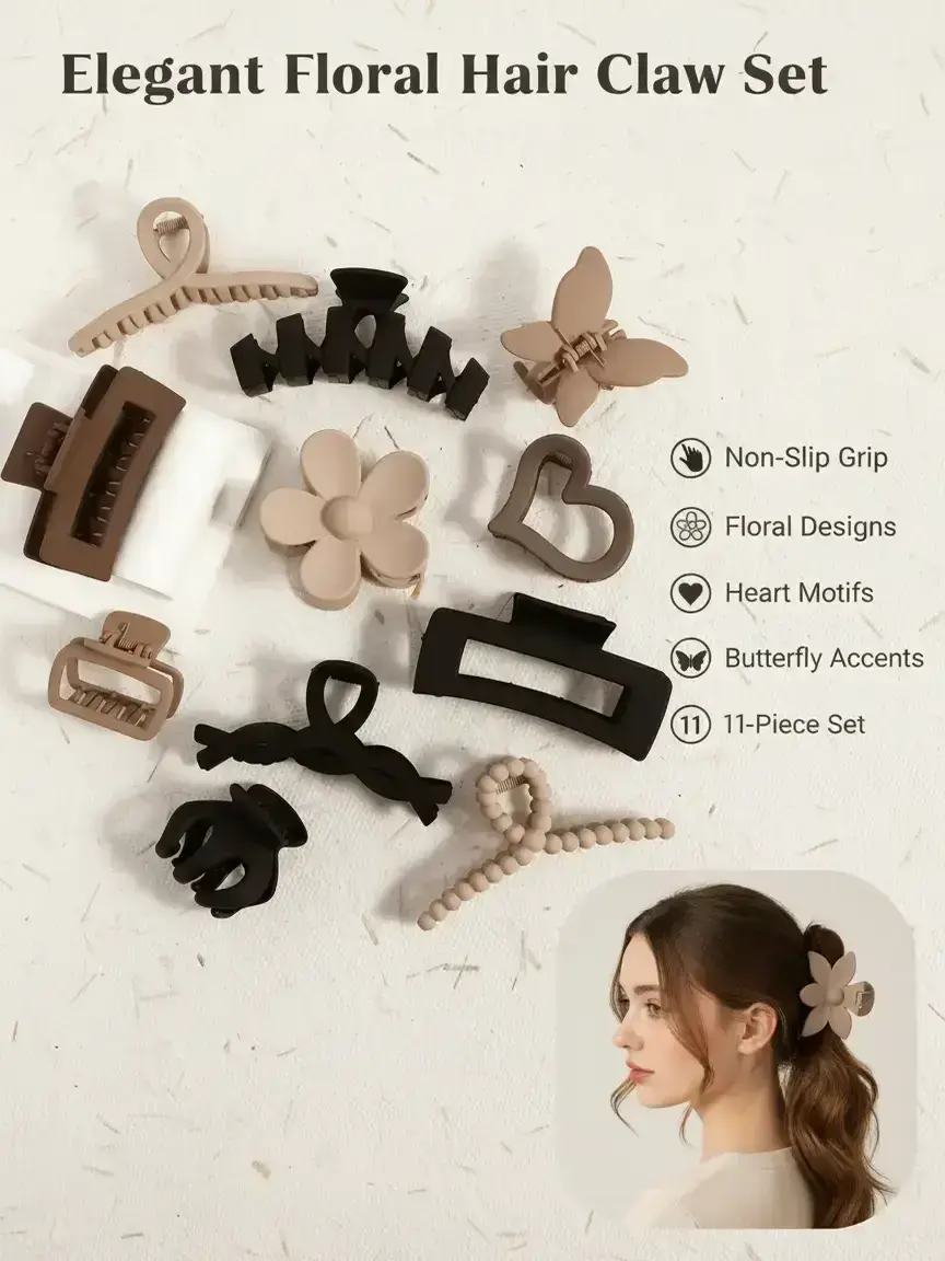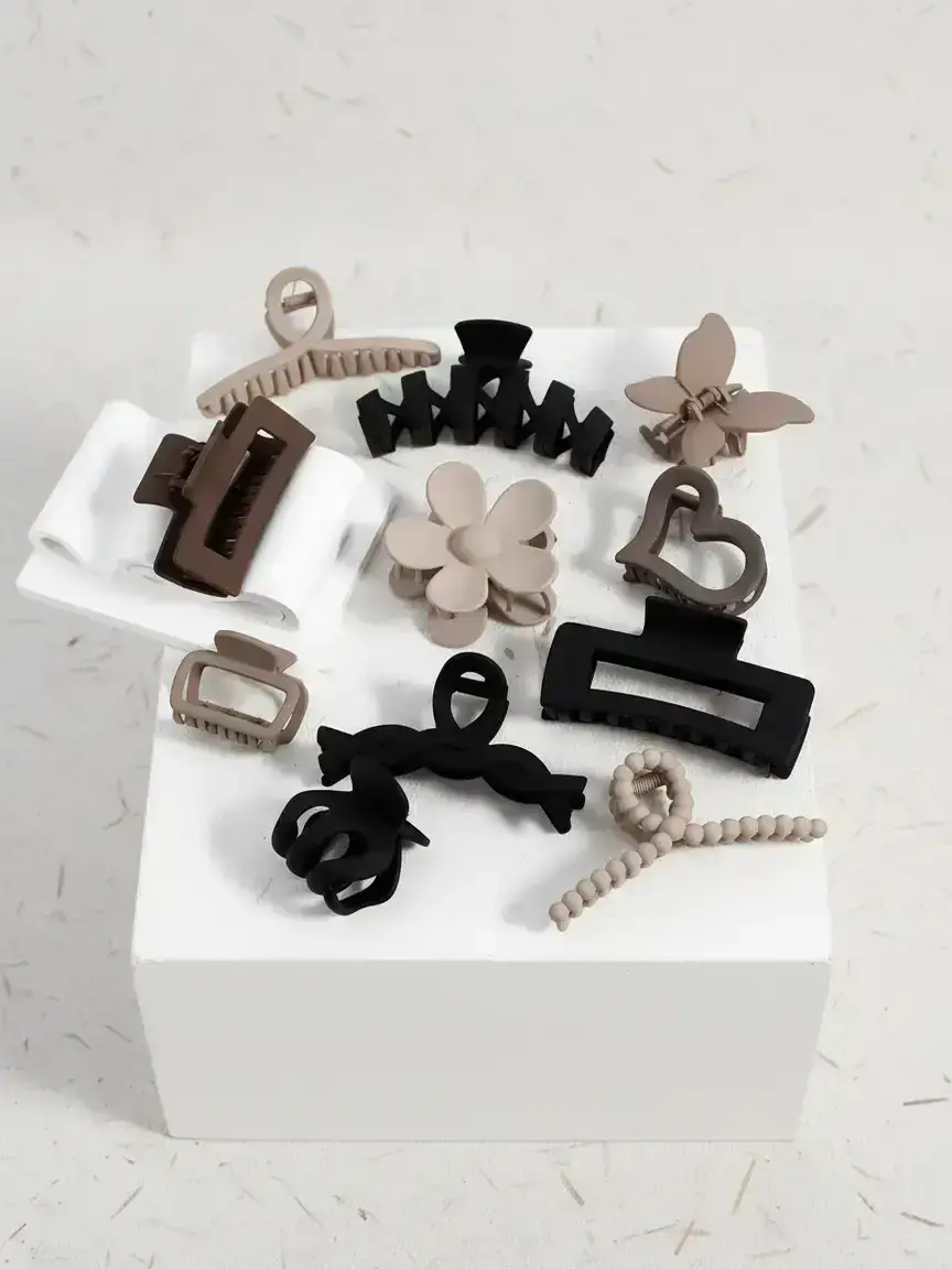 Love this set of 11 claw clips! The colors are beautiful, neutral tones like black, taupe, beige, and brown that match everything. Super sturdy and hold my hair all day without slipping. Such a great value for the price!