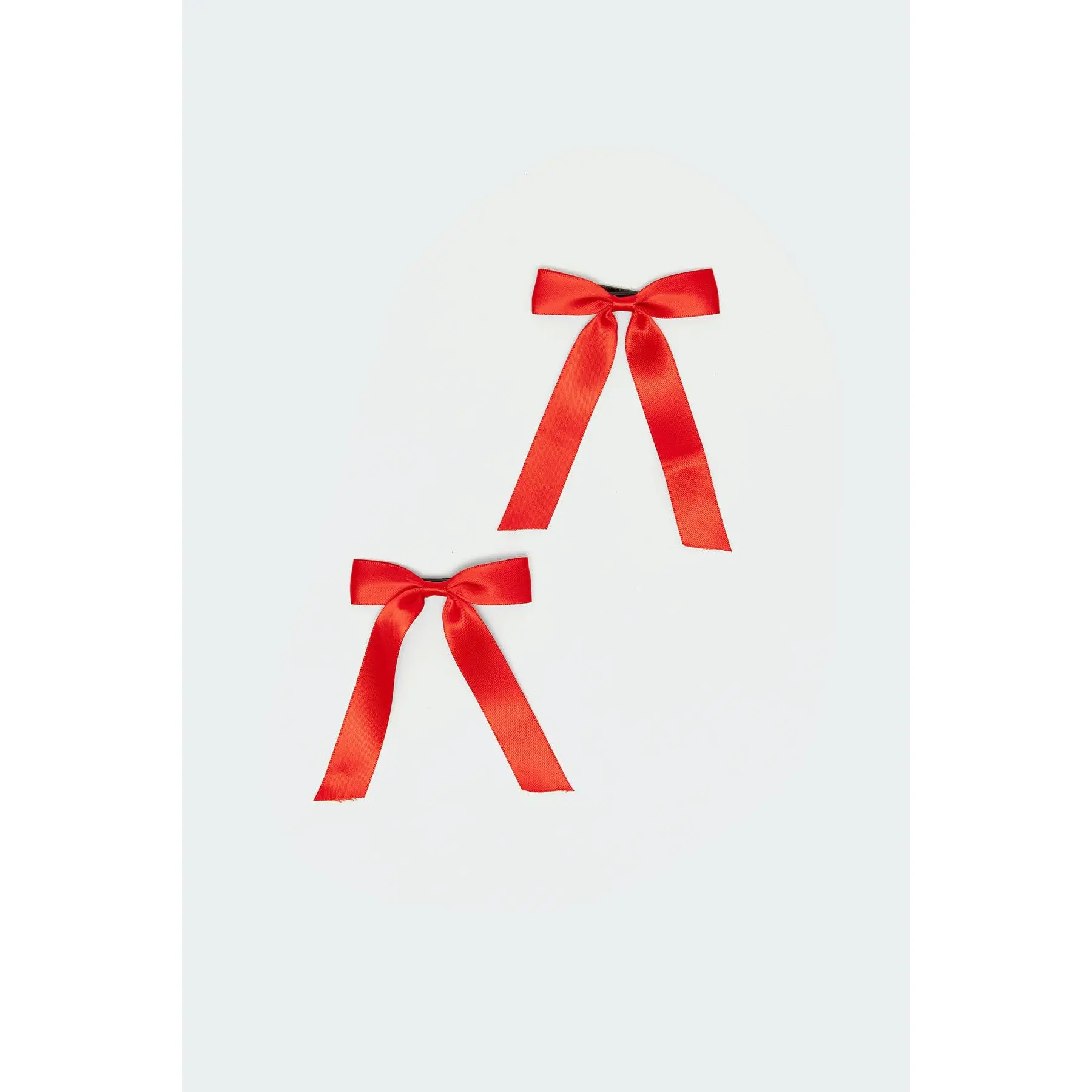 Bows have clips in the back so you can clip them to your hair , they don't fall off whatsoever and are the perfect red .