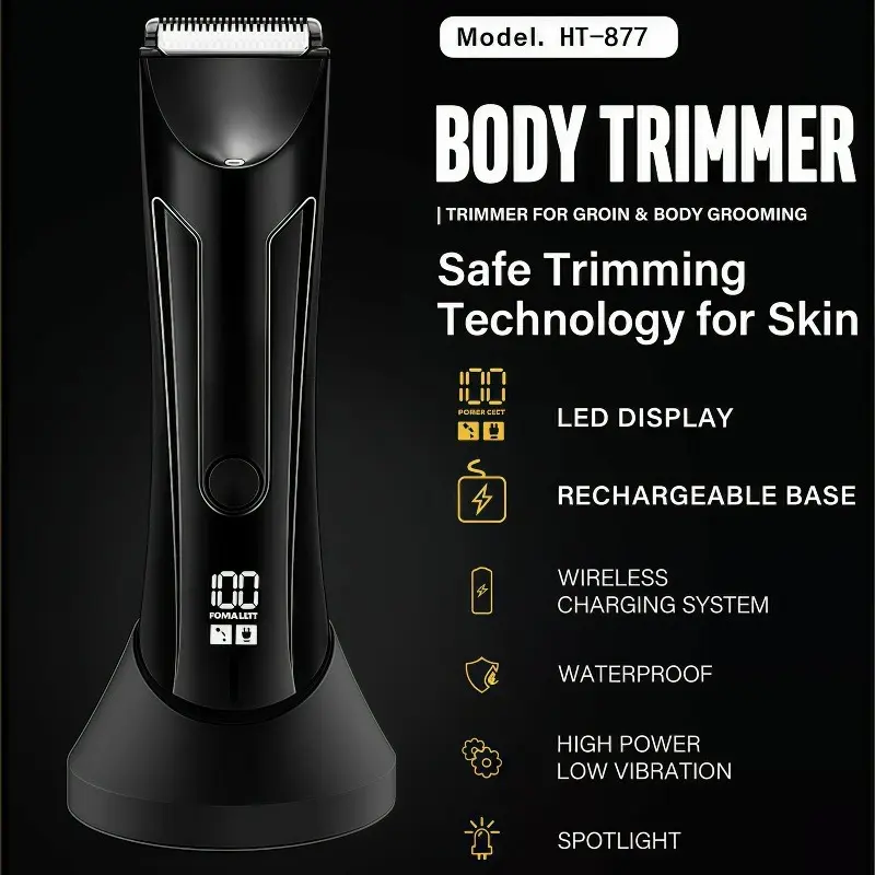 The beard trimmer includes an LED display to show the battery level, and comes with a USB charging cable for hassle-free charging.