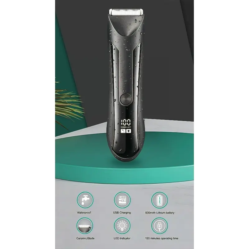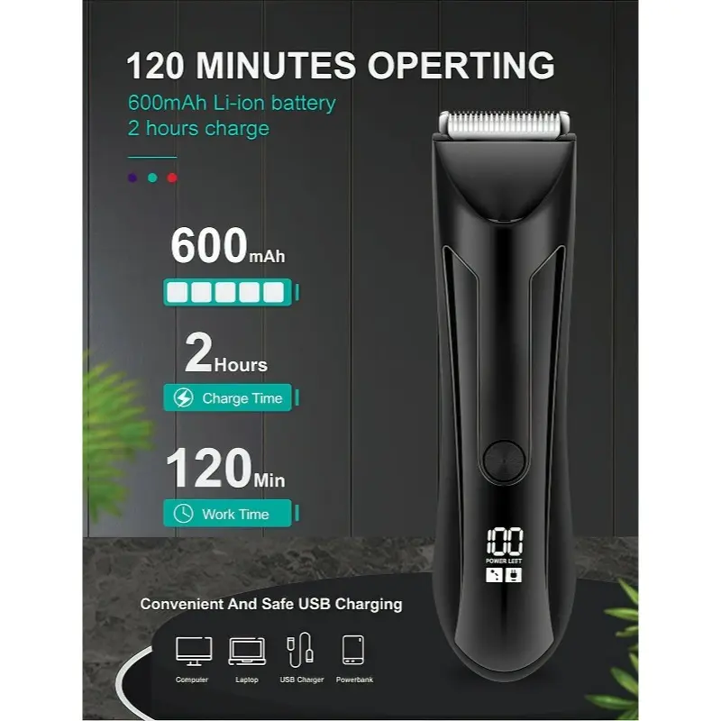 IPX5 waterproof rating for easy cleaning, 2-hour charge time, and 1.5-hour runtime, ensuring durability and long-lasting performance for all your trimming needs.