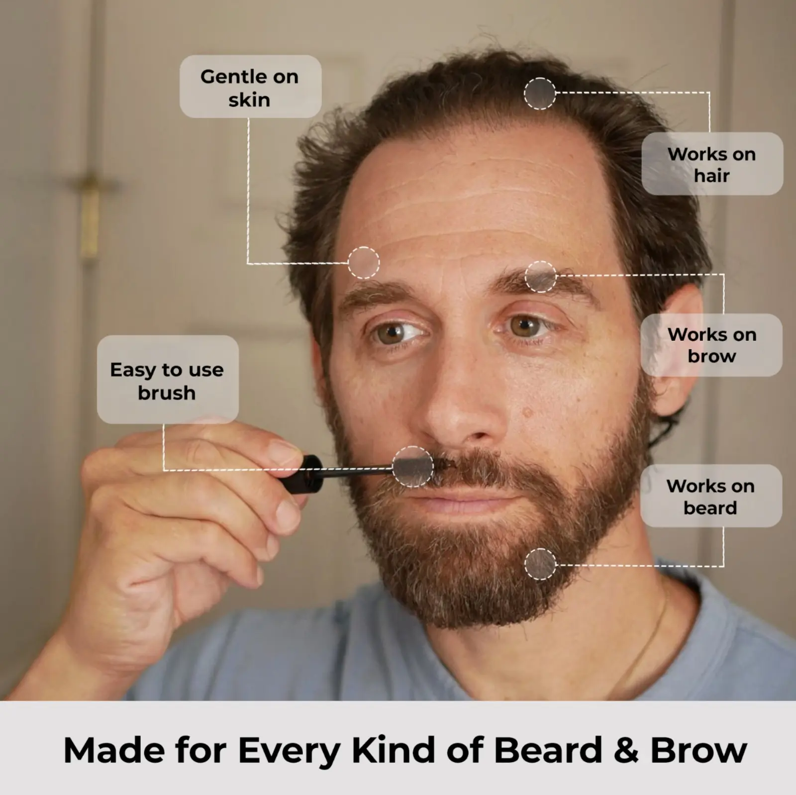 The beard color touch up looks great when applied, but needs to be reapplied two or three times daily...more if I'm active.