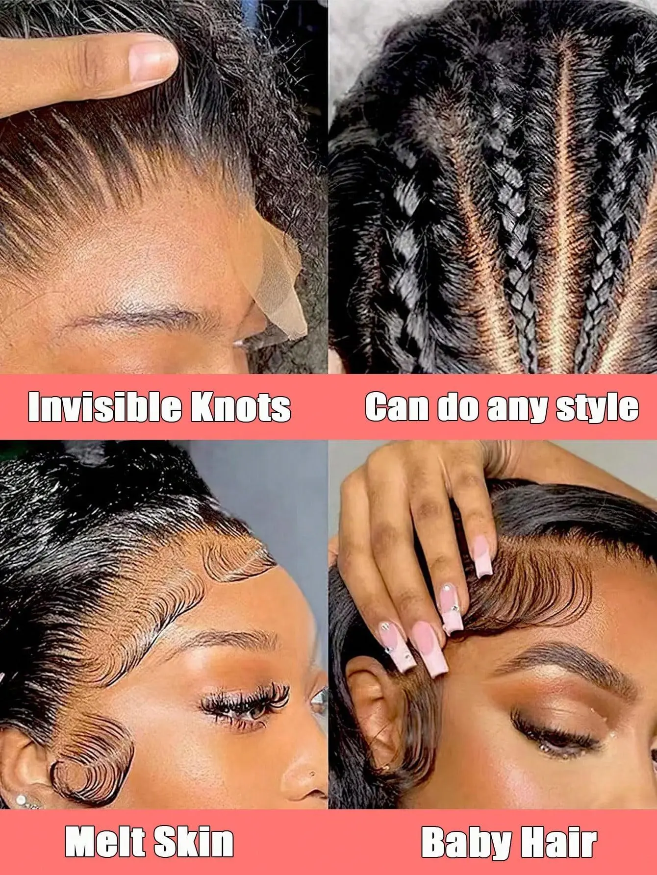 ·Wigs human hair material: 100% Brazilian Remy human hair wig, natural hairline with baby hair, super silky and bouncy, no shedding, no smell, no tangled.