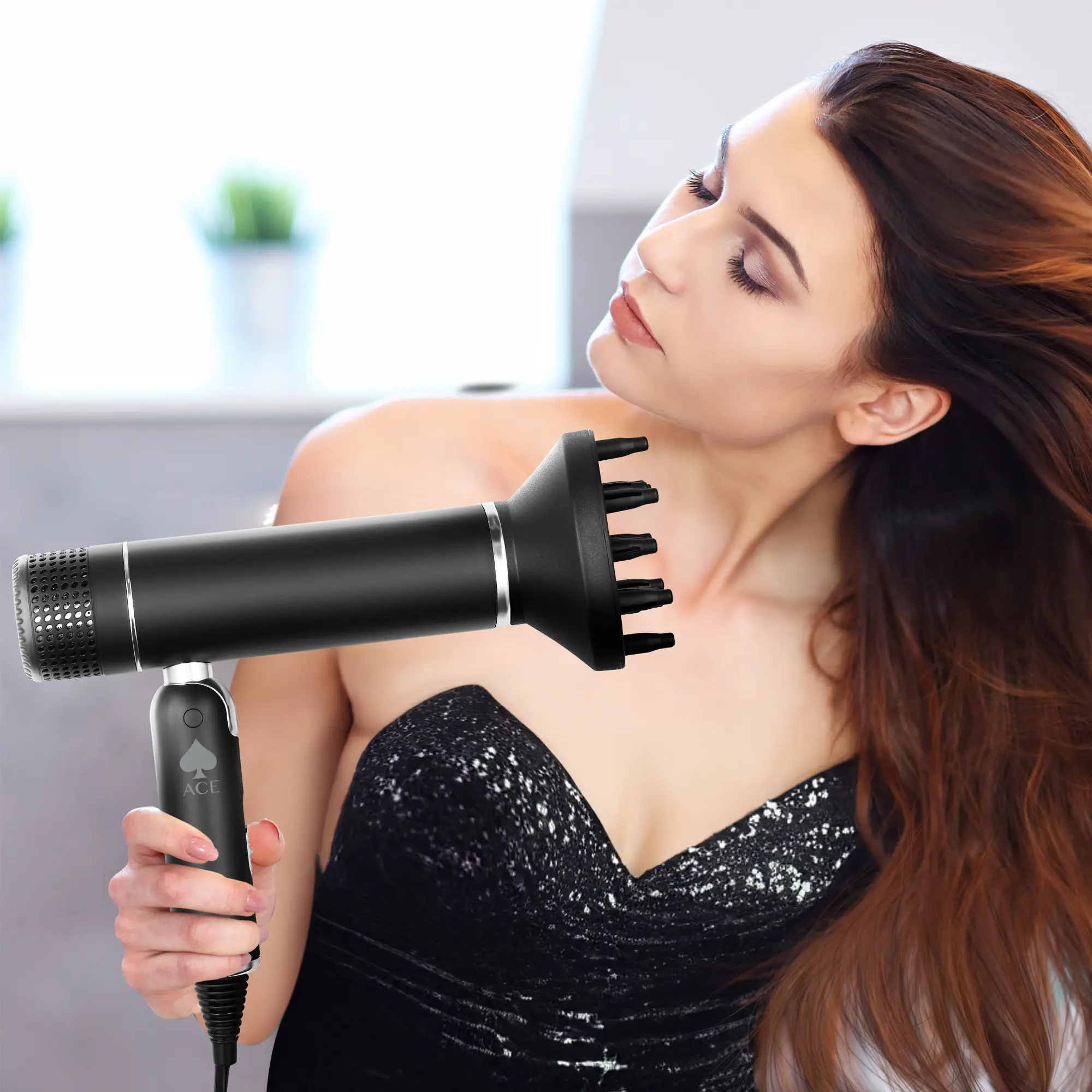 The concentrator and diffuser nozzles direct airflow for sleek, straight styles. The diffuser enhances natural curls and waves. The nozzle rotates 360 degrees for maximum flexibility. Upgrade your hair styling game with the ACE hair dryer, achieving salon-worthy results effortlessly.