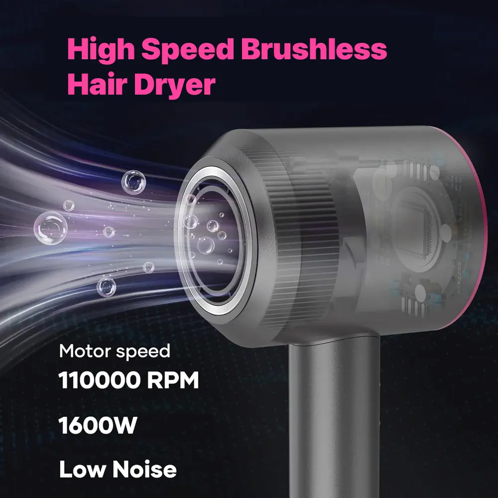 UNIQNOVA Leafless Fast Drying Hair Dryer Negative Ionic Blow High-Speed 110,000 RPM Brushless Powerful Motor Hairdryer Low Noise Magnetic Nozzle
