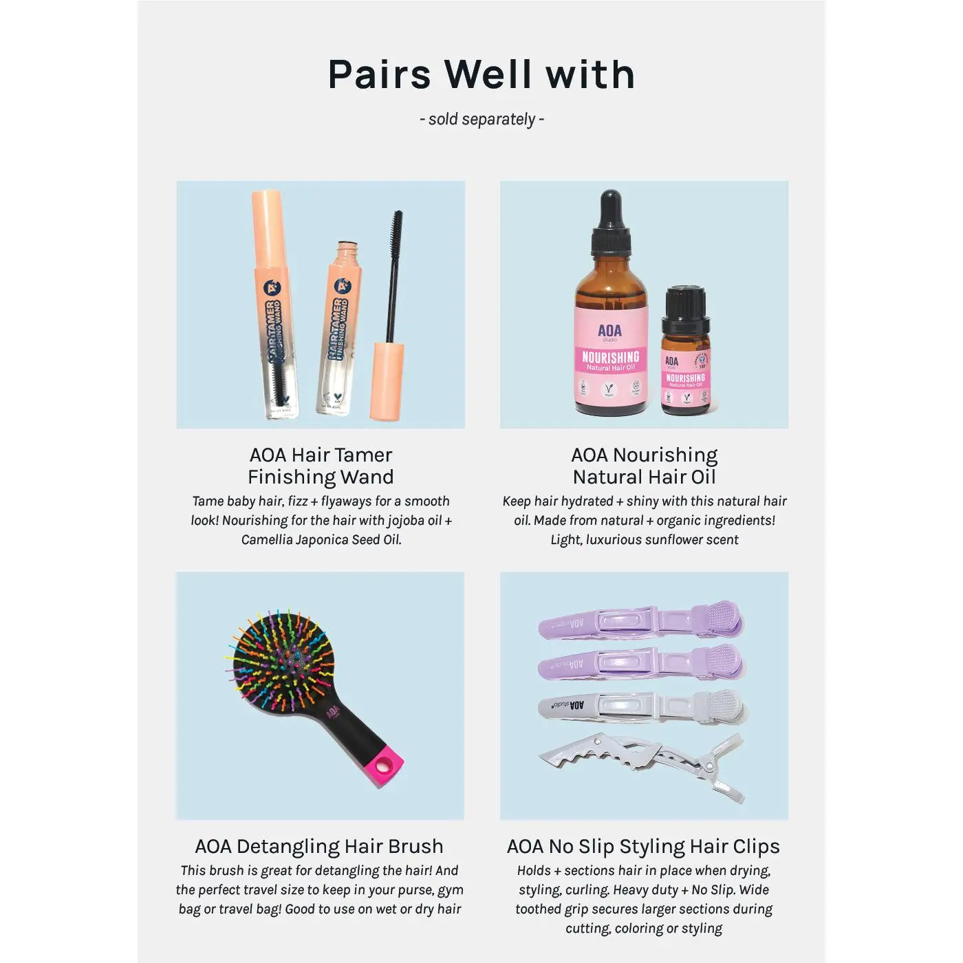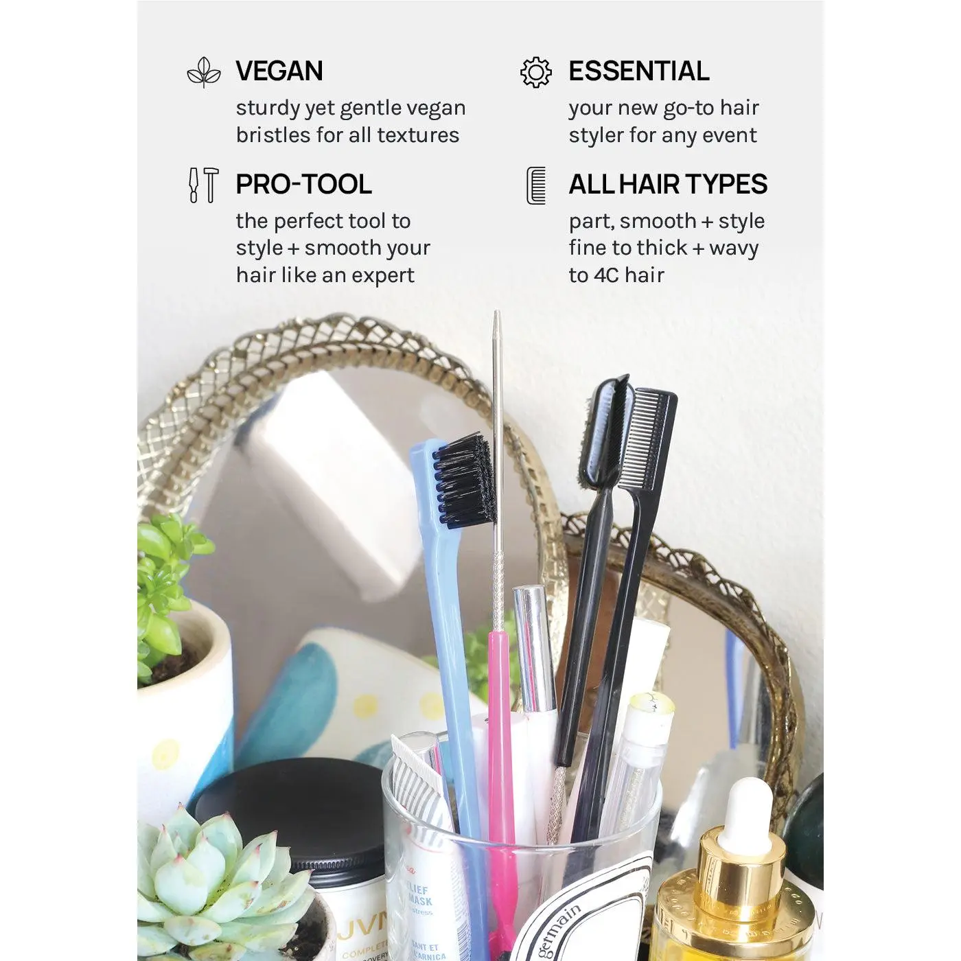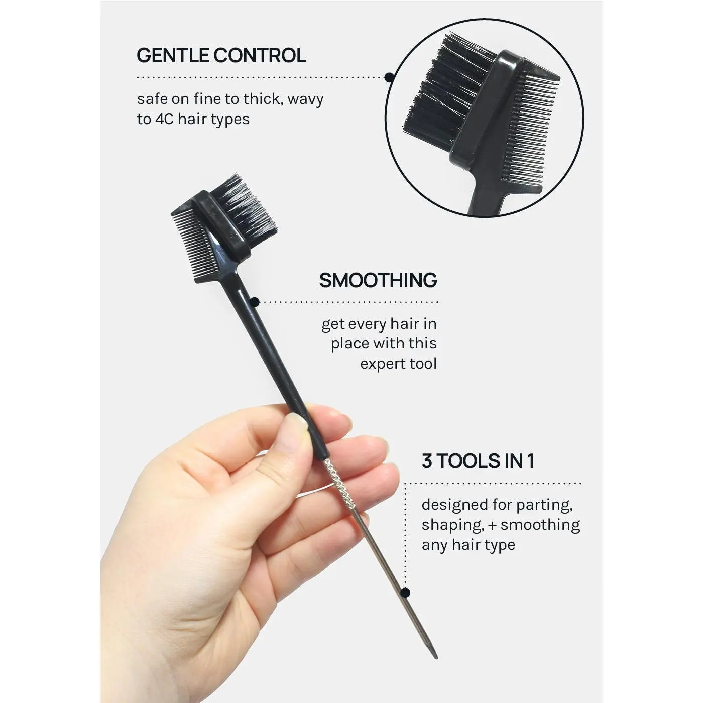 The brush also doubles as an edge control tool, helping you achieve sleek and polished hairstyles effortlessly. For best results, use it in combination with the AOA Hair Finishing Wand.