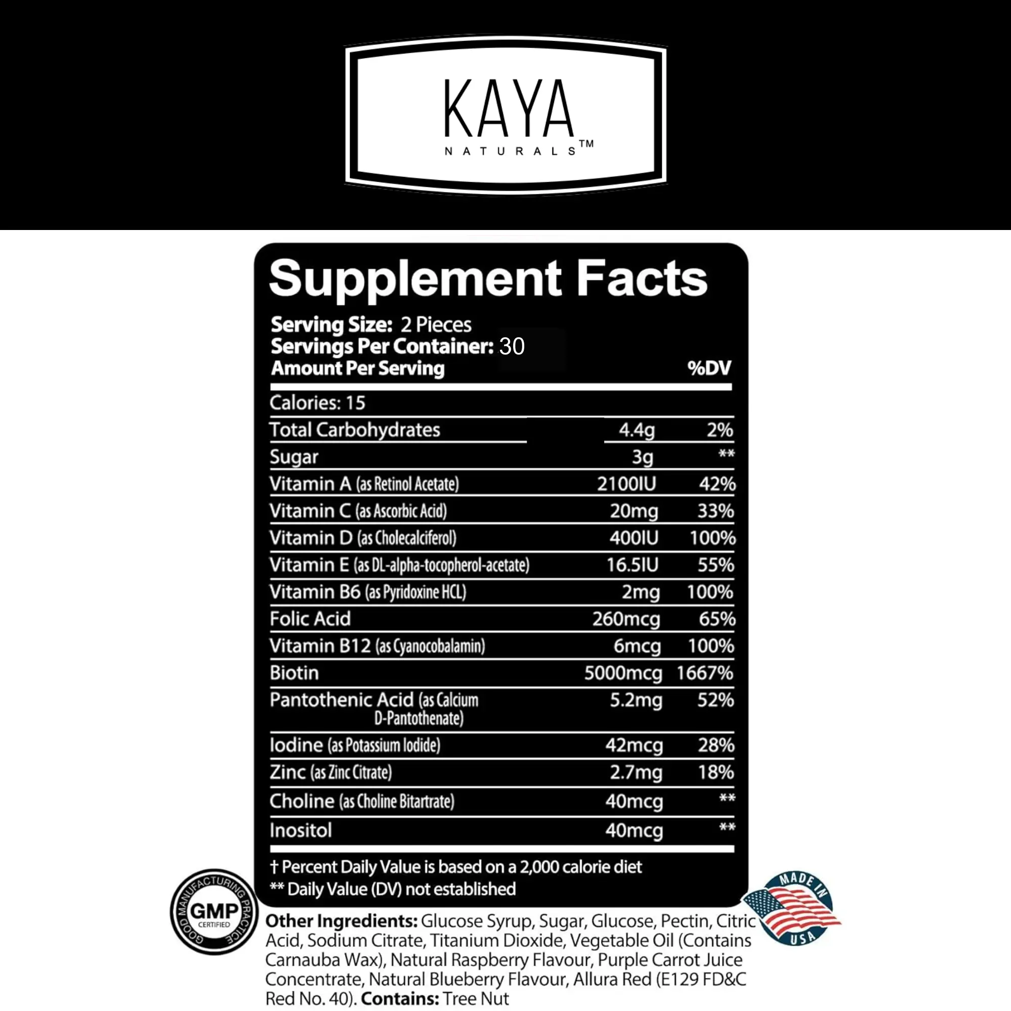 ·Hair, Skin & Nails Support: Kaya Naturals Biotin Gummies provide a delicious way to nourish and support the health of your hair, skin, and nails from the inside out offering 5000mcg of Biotin.