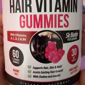 Hair Gummies are a tasty and convenient way to support healthy hair growth and overall hair vitality. These delicious gummies are packed with essential vitamins and nutrients, including biotin, folic acid, and vitamins A, C, and E, all known for their role in promoting strong, healthy hair. Perfect for anyone looking to enhance their hair care routine, Hair Gummies make it easy to nourish your hair from within.