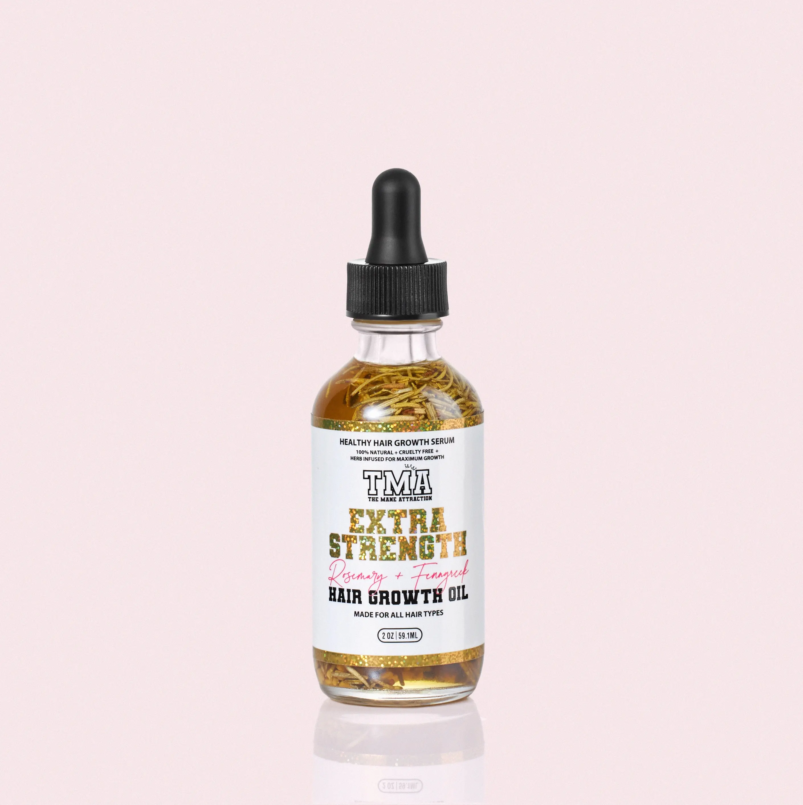 Extra Strength Rosemary & Fenugreek Hair Growth Oil 2oz - The Mane Attraction Herb Infused Growth Oil- Made For All Hair Types Haircare Solution Thickening Boost Herbal