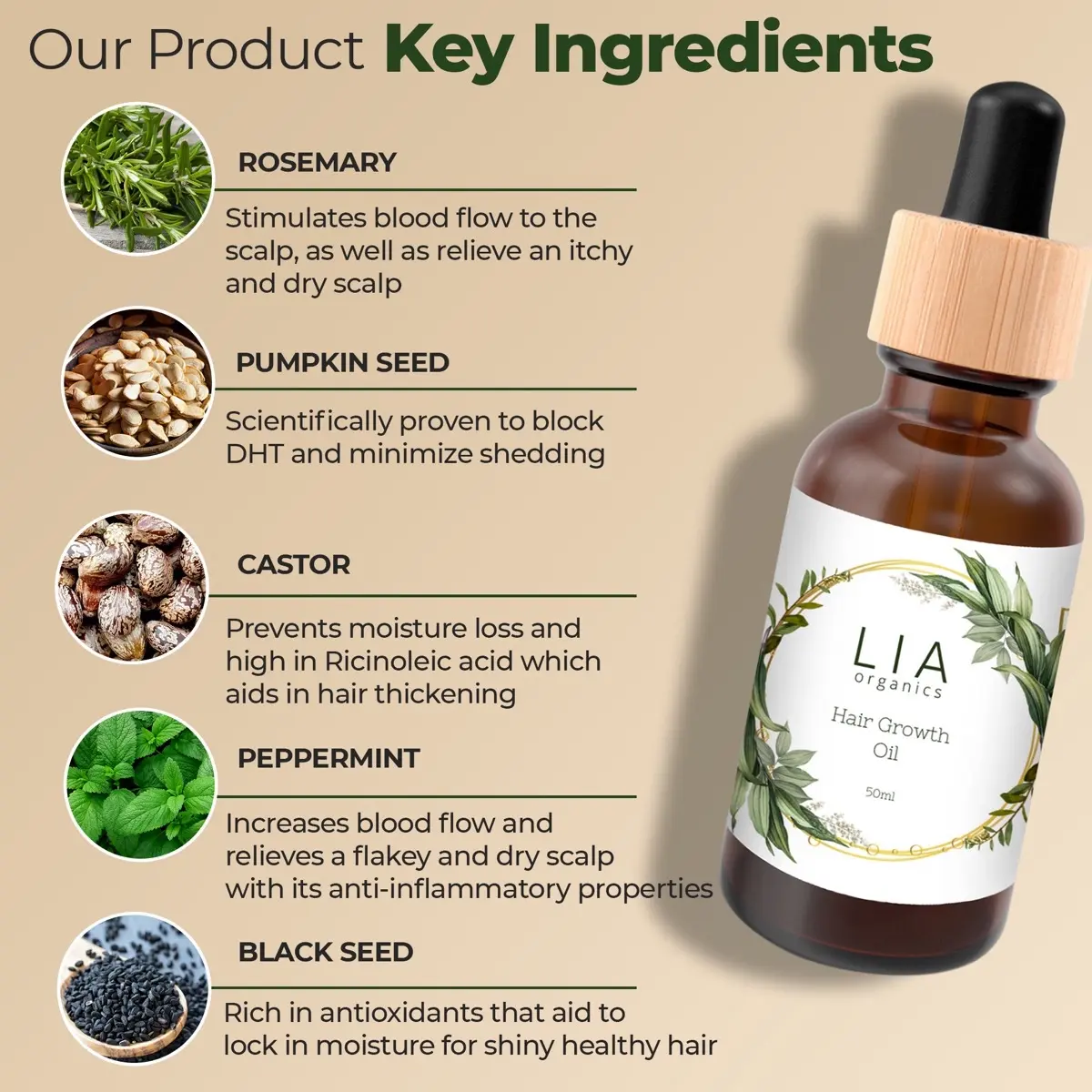 I’ve been using this for about 4 and I’m pretty sure it’s the oil making my hair GROWW but i definitely have noticed a significant amount of filling in thinning spots. Photos I provided show new hairs forming in my middle part. I will def continue using this religiously. Thank you LIA ORGANICS -Nick