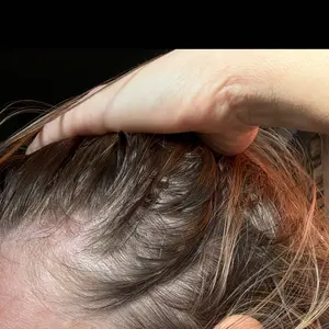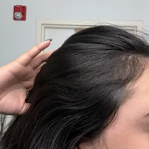 ITS WORKING!! Im In perimenopause and my hair is falling out by the clumps. Tried a lot of other products and nothing has helped. Got this in July and I am now starting to see baby hairs all over! I will never be without this oil! THANK YOU!! 2 pics before, 2 pics 2-3 months later!