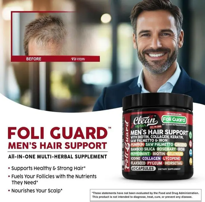 Elevate your hair health with the Foli Guard Men's Hair Support Supplement, and enjoy the benefits of optimal hair growth and strength.