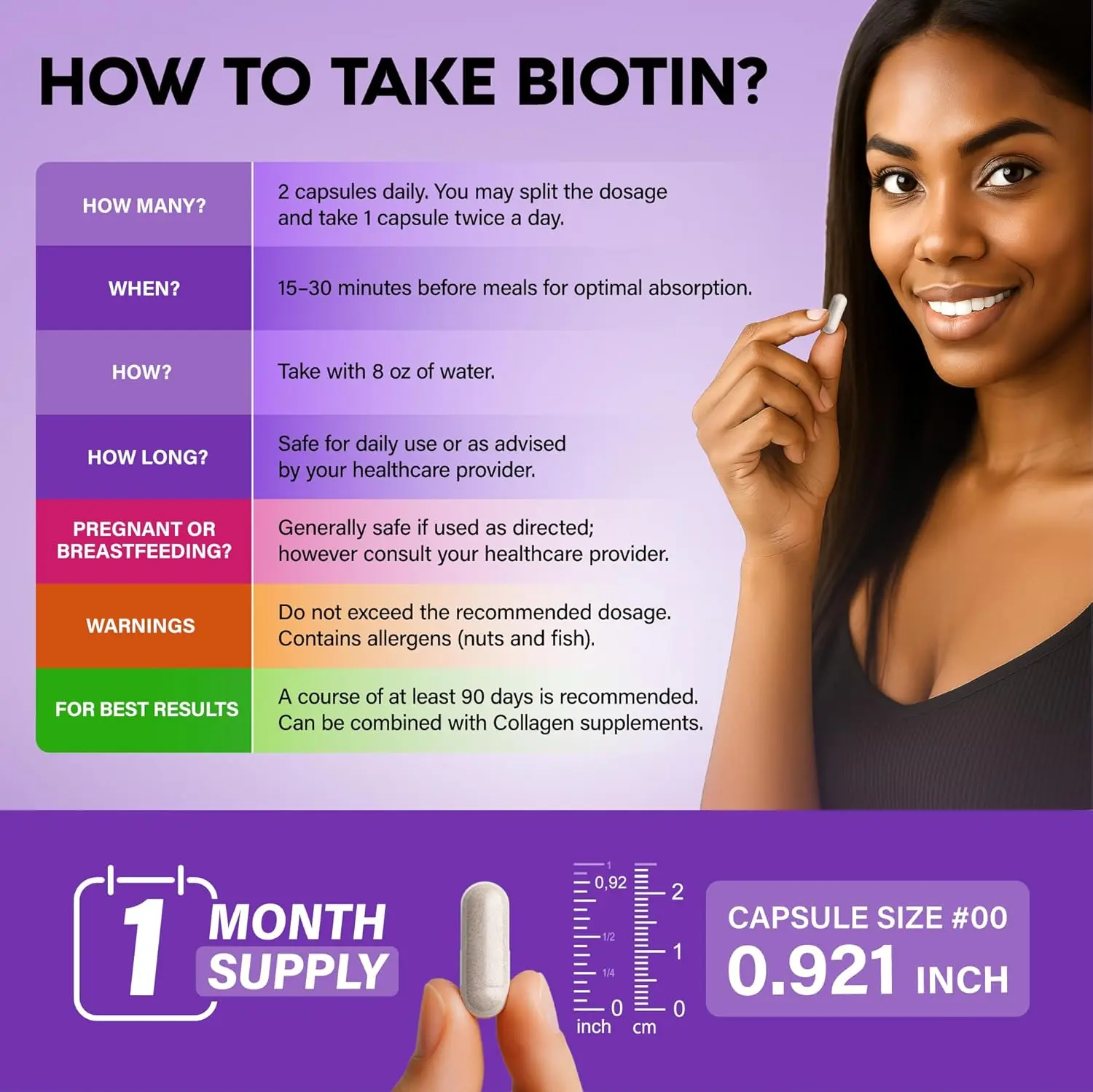 ·Highest Quality — We work hard to produce high-quality products to meet & exceed your expectations. Please drop us a message and share your usage experience with Biotin & Collagen capsules.