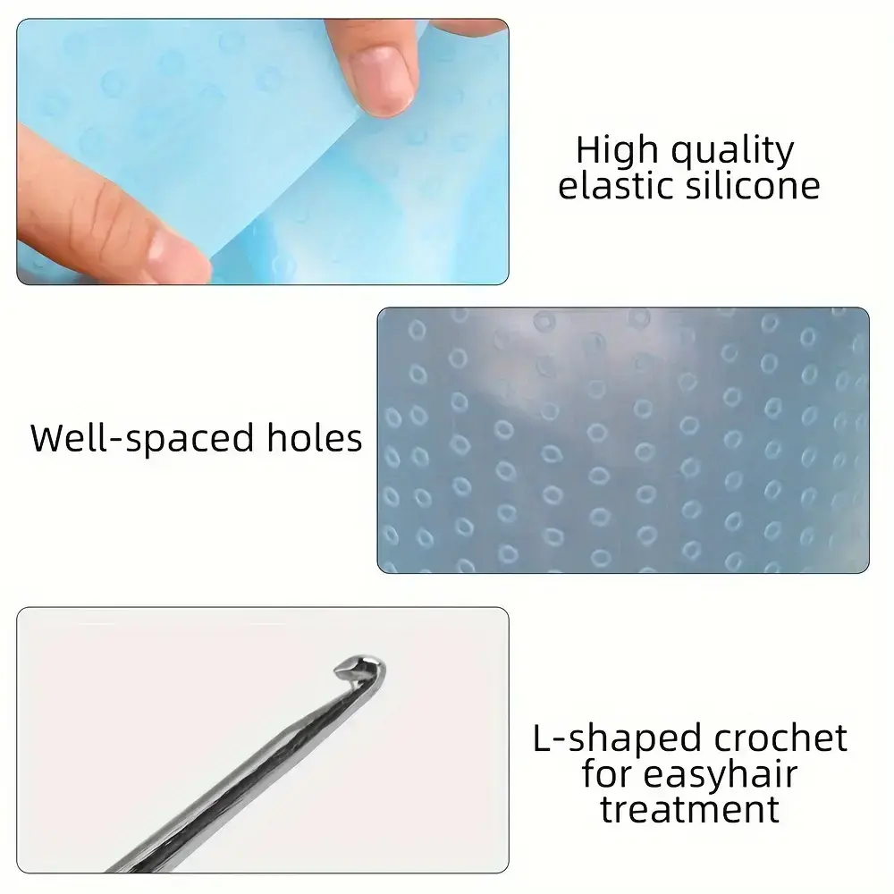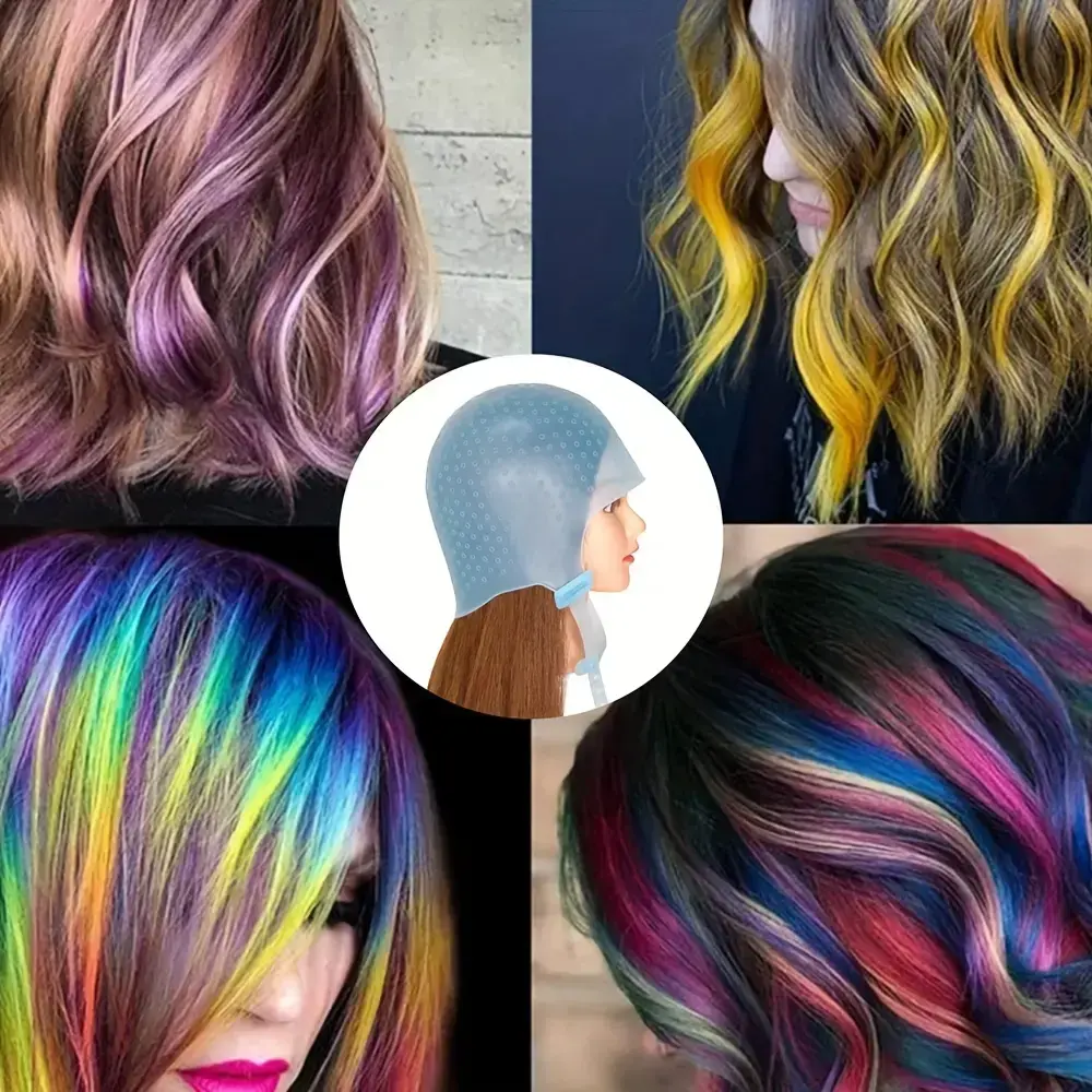 Hair highlight cap, hairdressing silicone dyeing hat, high temperature resistant reusable silicone dyeing hat toolfashion Blue Haircare Heatless