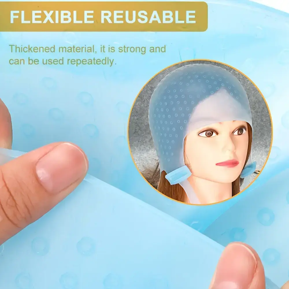 5. Hair highlight cap, hairdressing silicone dyeing hat, high temperature resistant reusable silicone dyeing hat toolfashion Blue Haircare Heatless