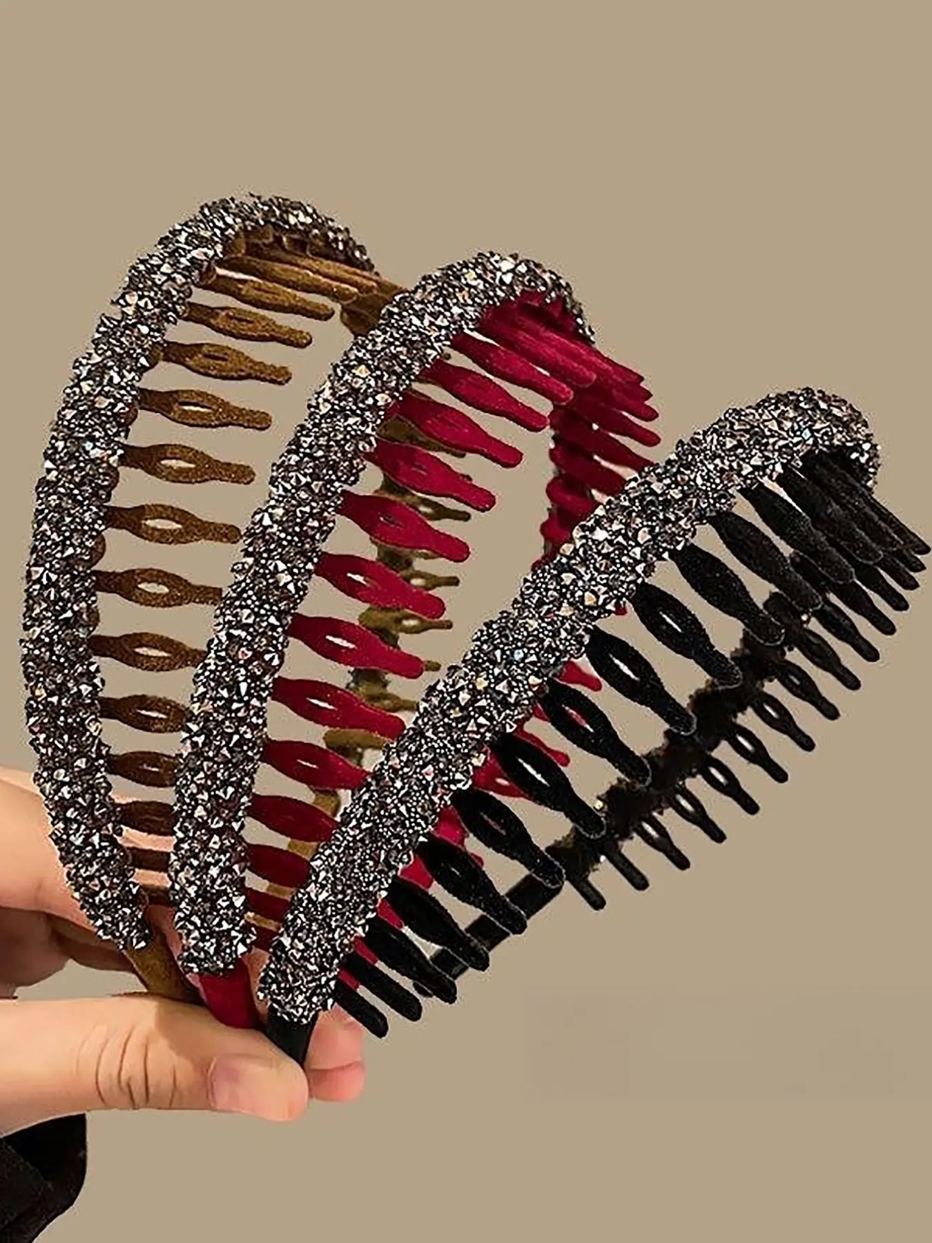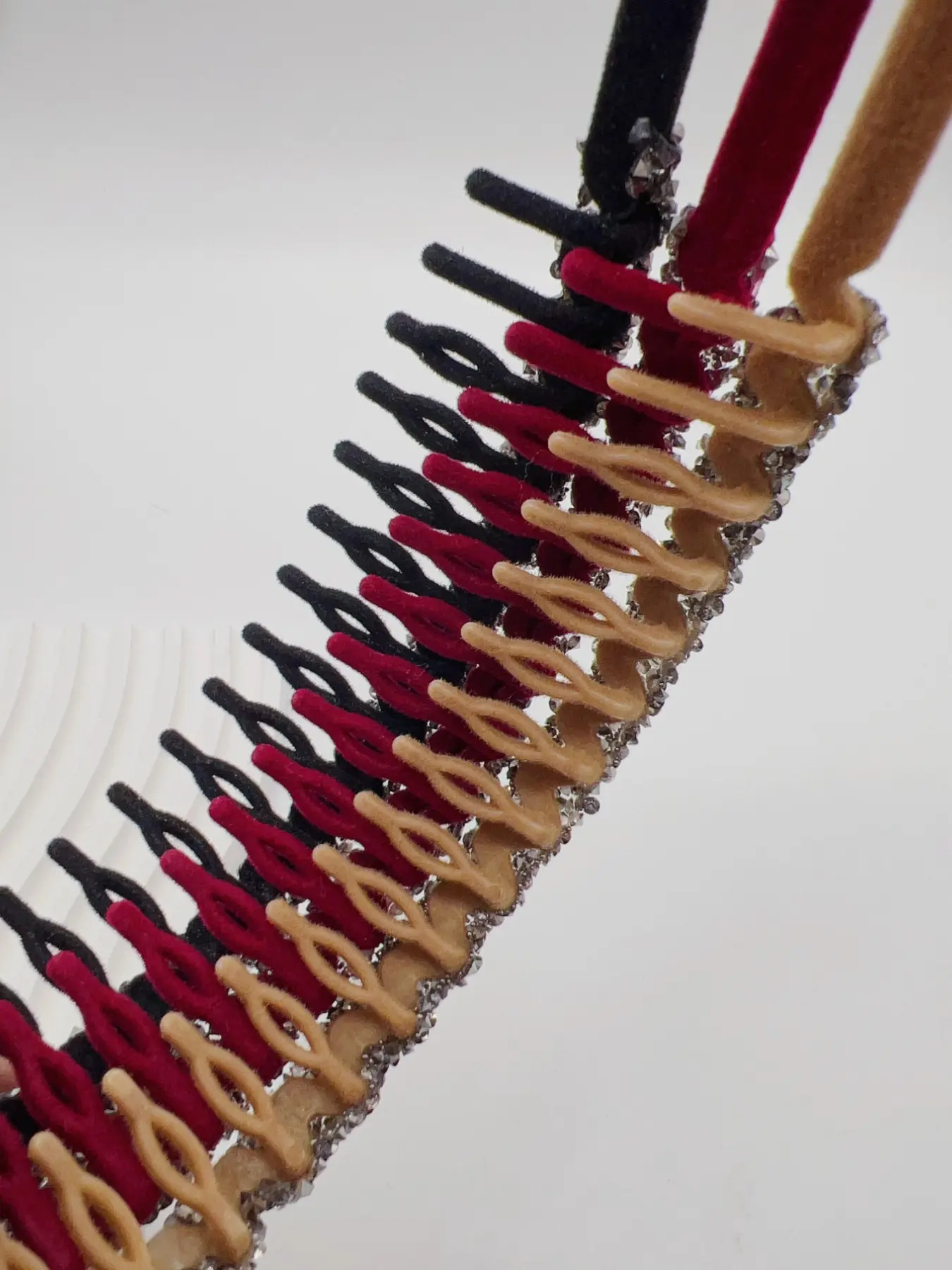 Quality of work: The red headband was unfortunately missing parts to the glitter part of it. The brown and black were ok just the red one was bad. Fast delivery though other than that they are pretty