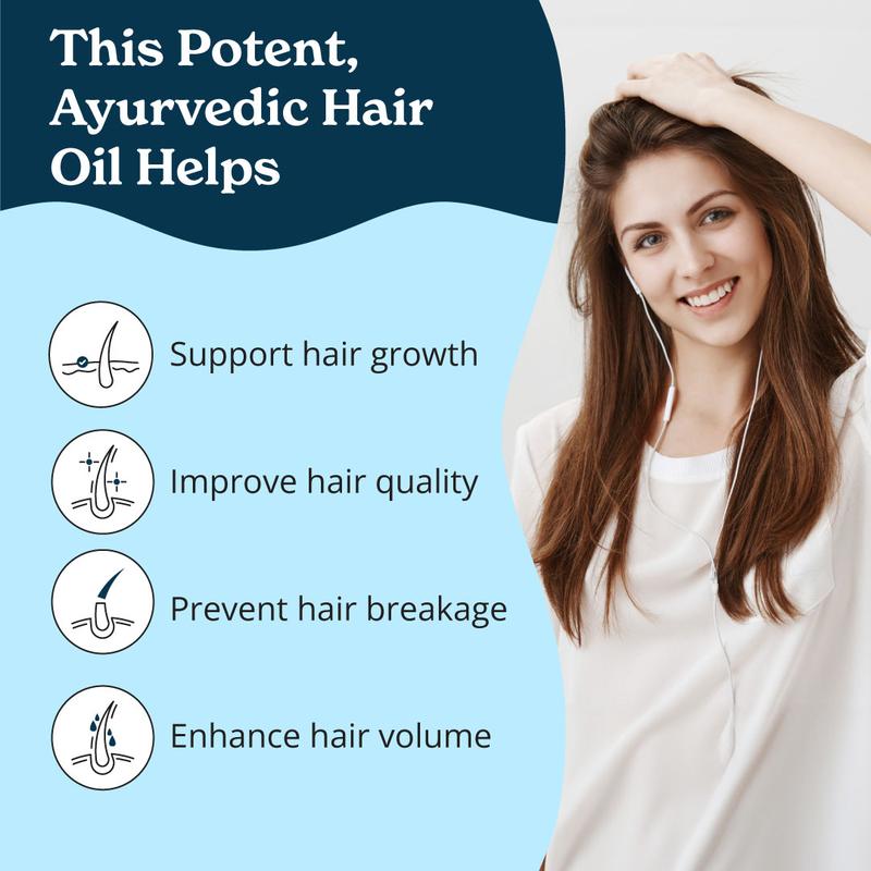 Lock moisture into your locks! Your dry hair needs this natural ayurvedic blend of organic oils to quench its thirst. Made of 12 100% pure Ayurvedic oils Moisturizes hair Promotes a healthier scalp