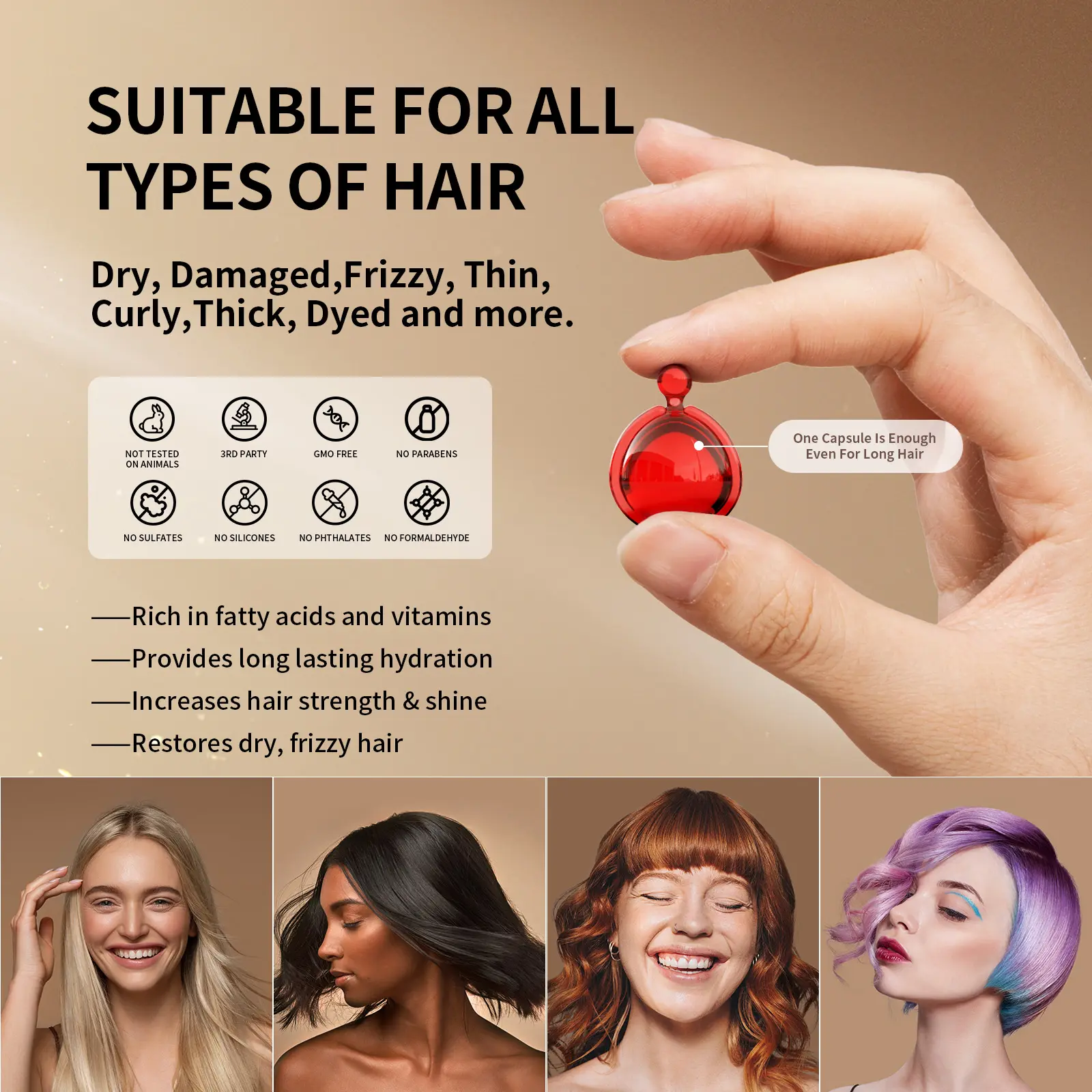 YOY GUYSSSS OMG THIS IS A MUST BUT IF YOUR EVEN TAKING TIME TO READ THE REVIEWS. LITERALLY 100/10 CAPSULES WERE WAY BIGGER THEN I THOUGHT THEY WOULD BE AND LEAVE MY HAIR SOFT & SLIKY SMOOTH I can finally comb my fingers through my hair without it all breaking even after brushing. GET THIS STUFF.