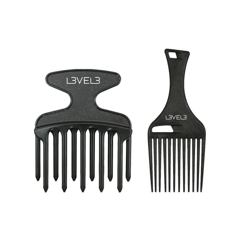 Hair Pick Comb Set - 2 Pc is made of durable resin that is stronger and more heat resistant than other brands. This comb set has rounded tips, allowing it to glide smoothly through hair. Ergonomic design provides comfort while using. The comb pick is made with rounded tips for gentle combing without scalp irritation! Our hair picks for men and women are made to glide through straight and curly hair easily. The hair picks comb is a durable set that is made with resin and is heat resistant! Dimensions: Longer comb is 6.75" L x 2.75" W. The Wider hair comb is 5" L x 4" W.