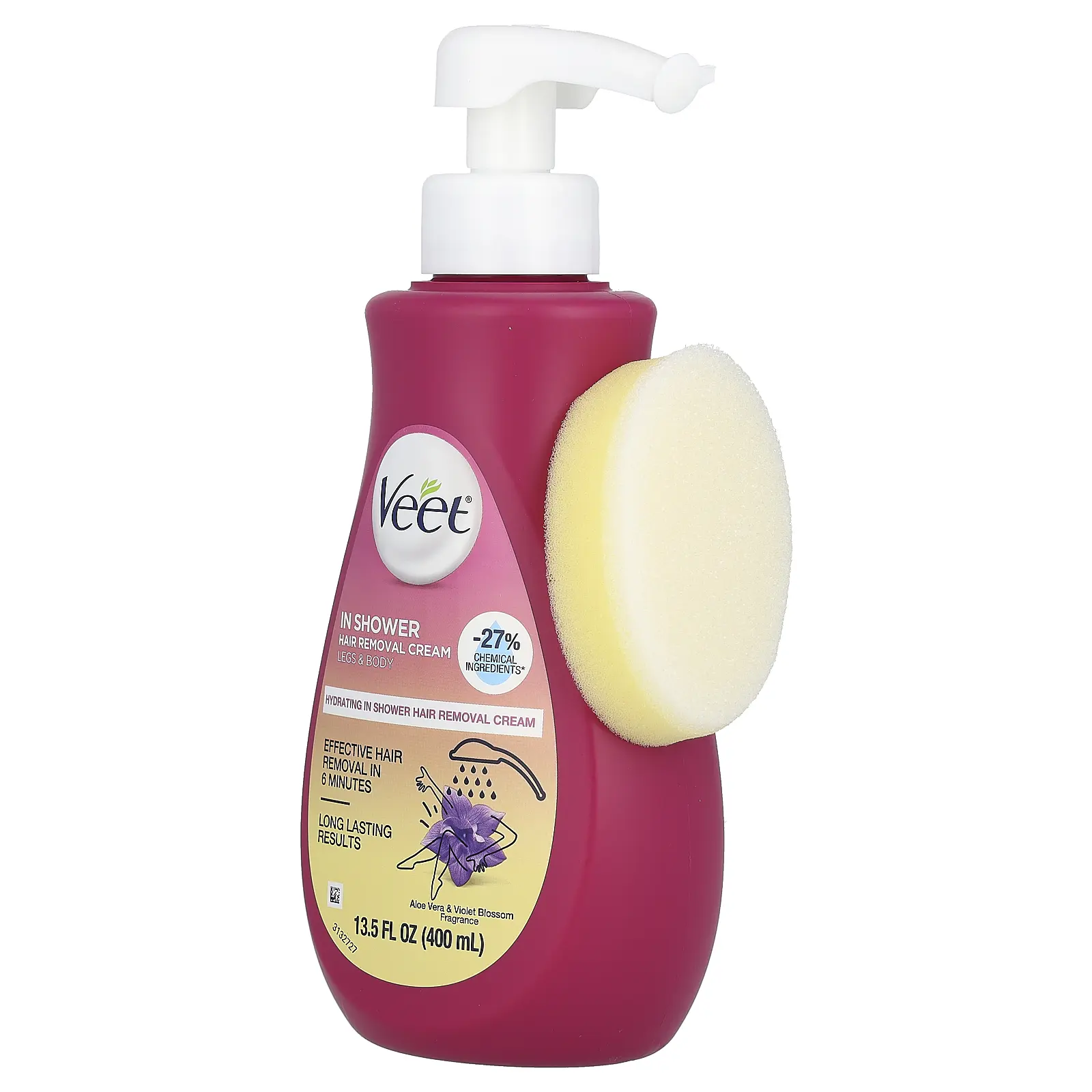 Veet In Shower Hair Removal Cream, Aloe Vera & Violet Blossom, 13.5 fl oz (400 ml)