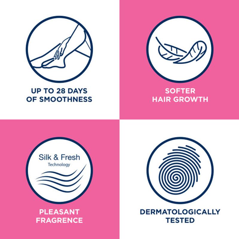 Veet In Shower Cream Hair Remover works close to the root even on short hair, giving you smoothness that stays smoother for longer than shaving. It can remove hair in as little as 6 minutes. The product has been designed to fit in with your busy routine: with a special combination of water-resisting ingredients, it works while you shower so you can get on with your day leaving your skin moisturized and touchably smooth.