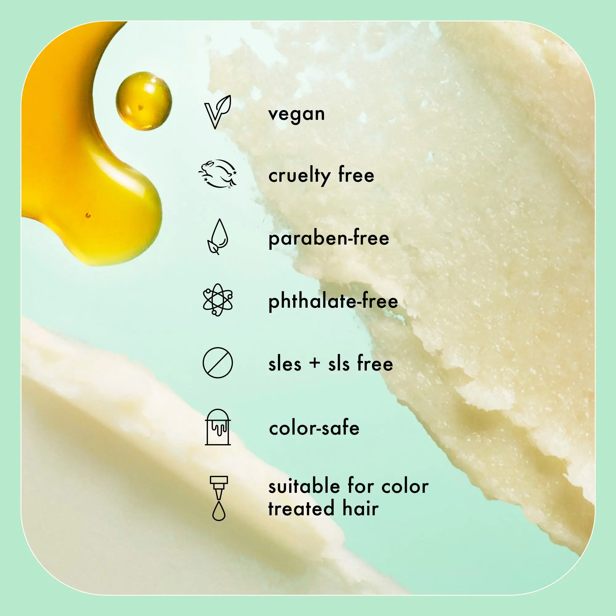 - bond cure technology: an innovative complex targeting hydrogen bonds in hair, which are the most prone to breakage due environmental stressors, heat, chemical treatments, and more.