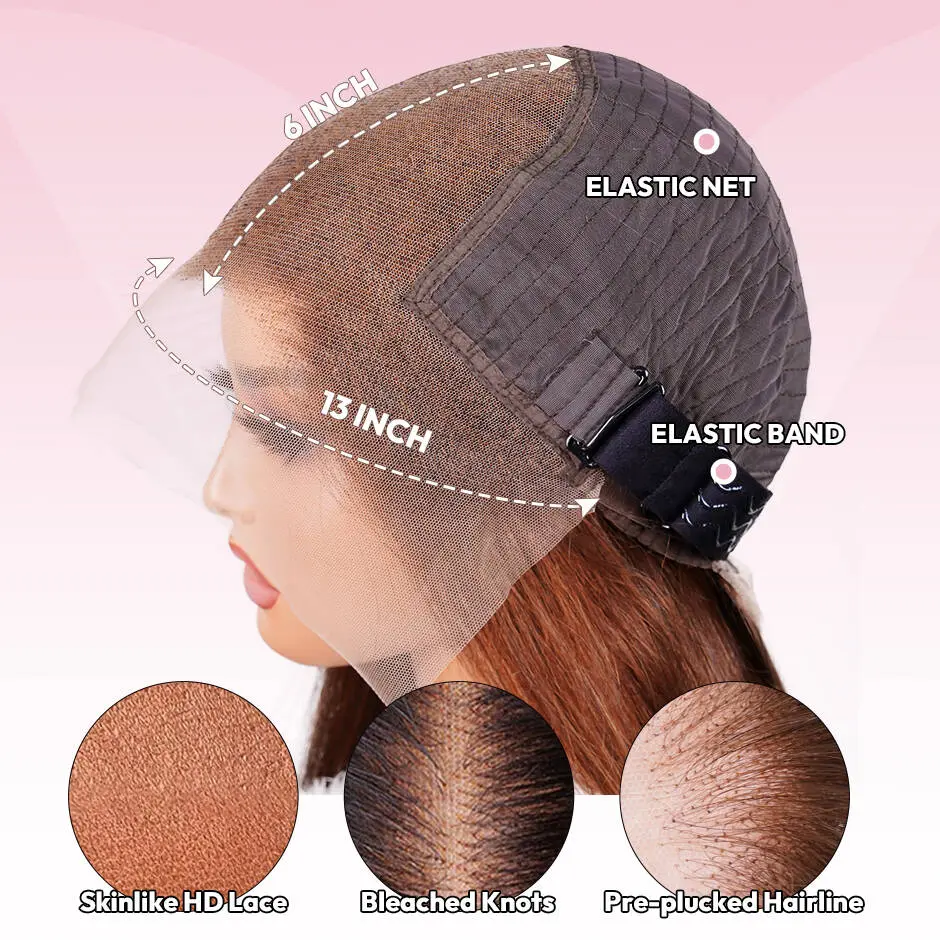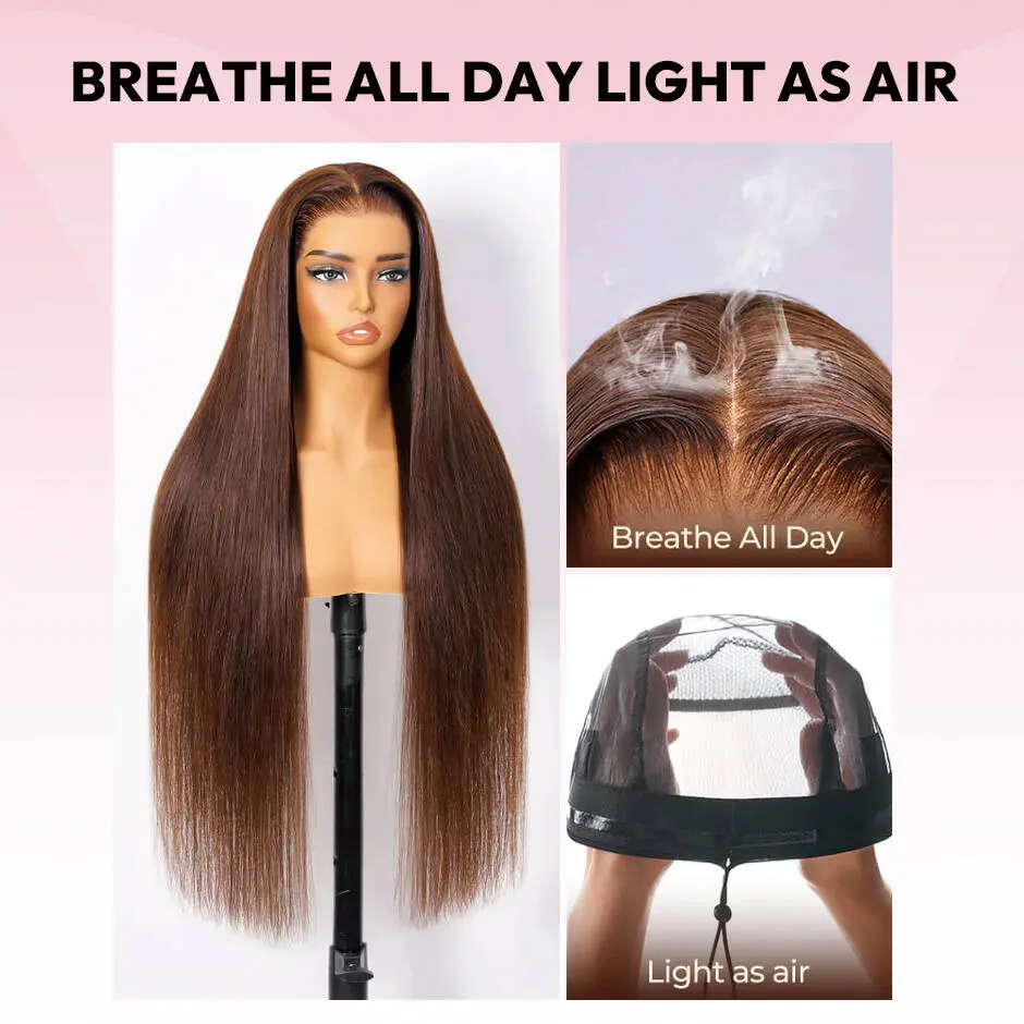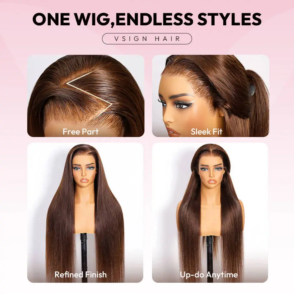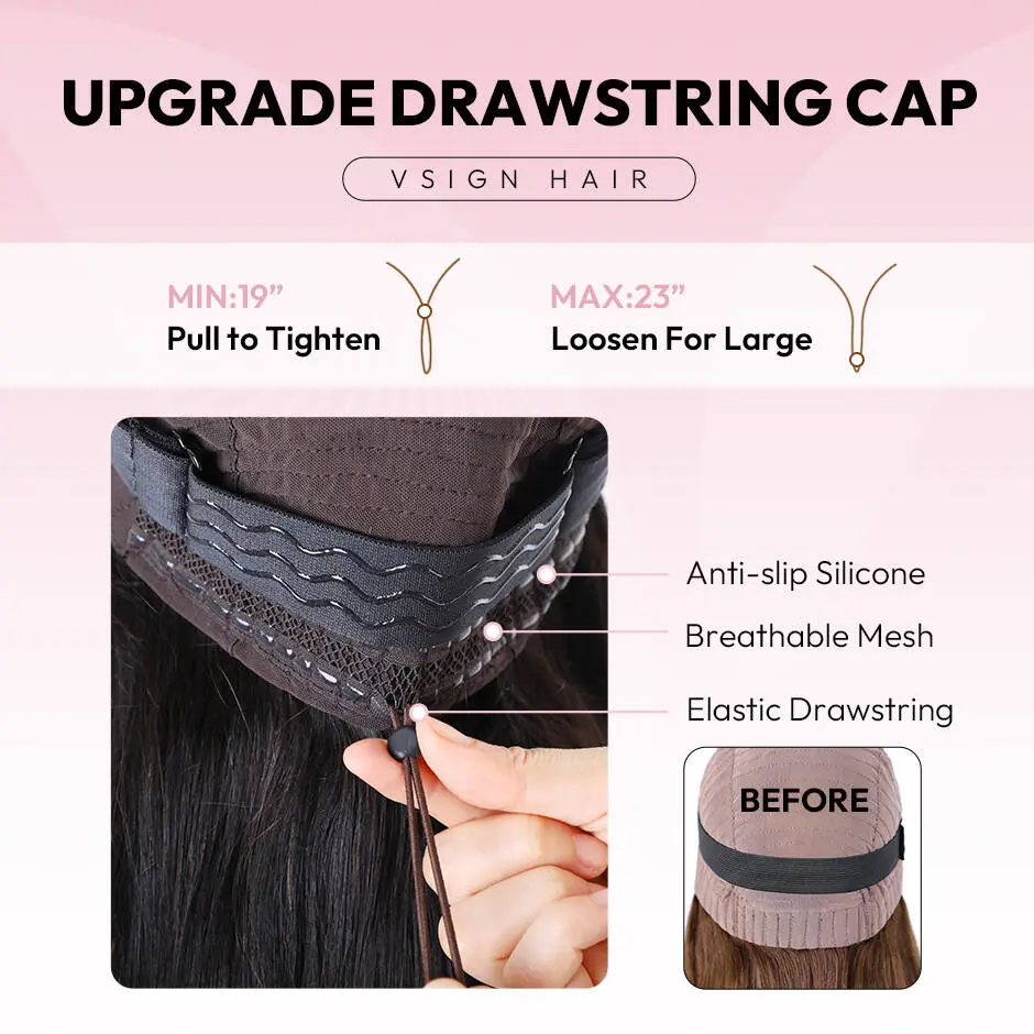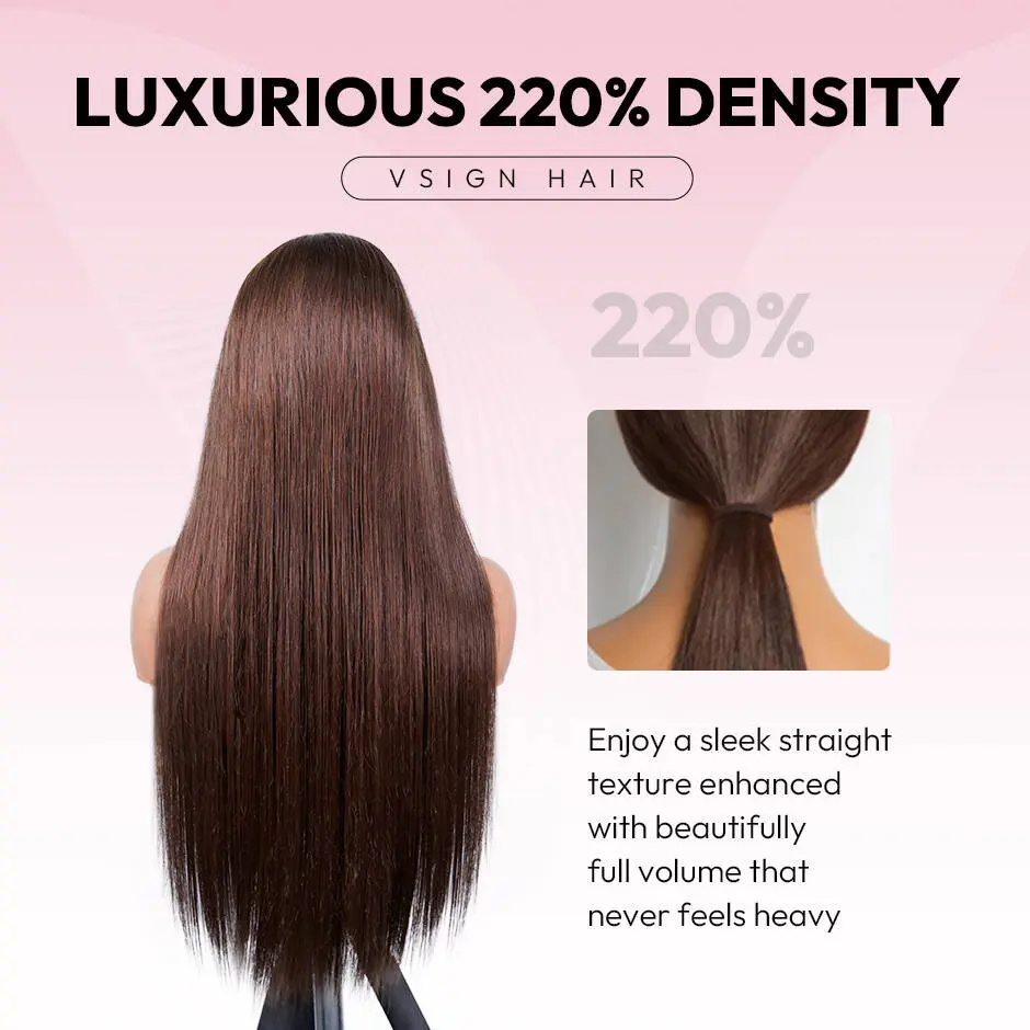 VSIGN Chocolate Brown #4 13*6 Drawstring HD Lace Front Wig Synthetic Heat Resistant Fiber Hand Tied Pre Plucked Hairline Glueless Wig