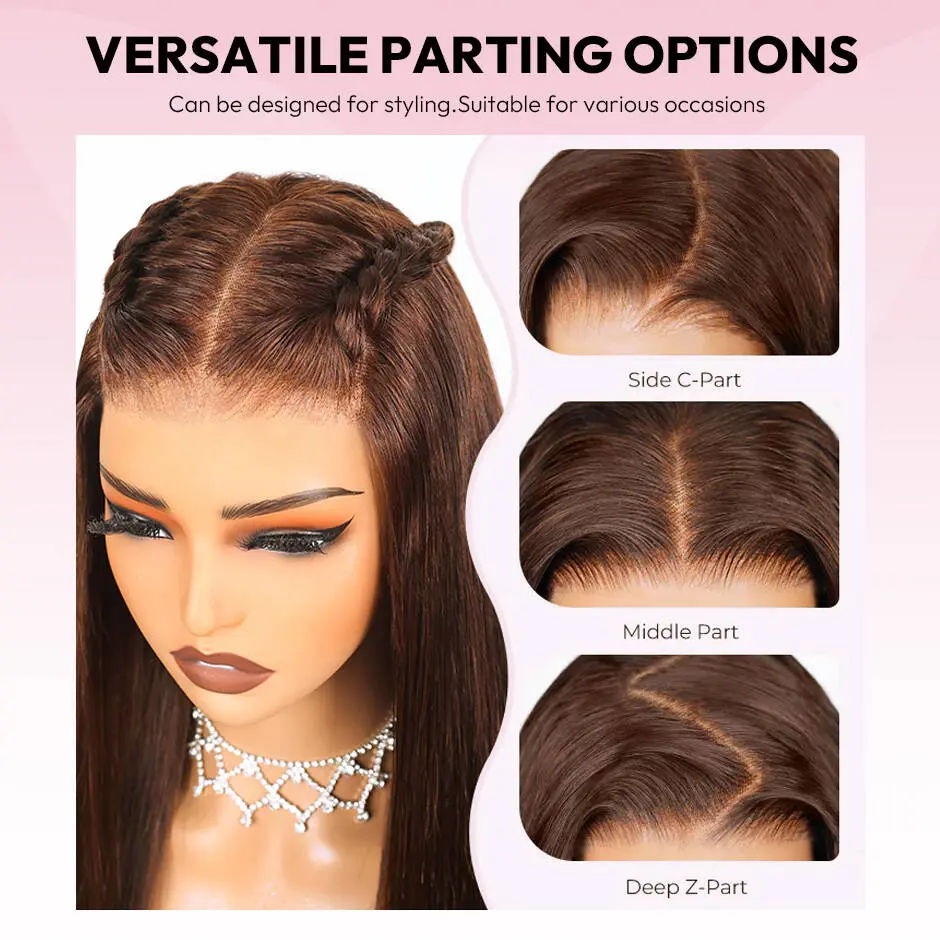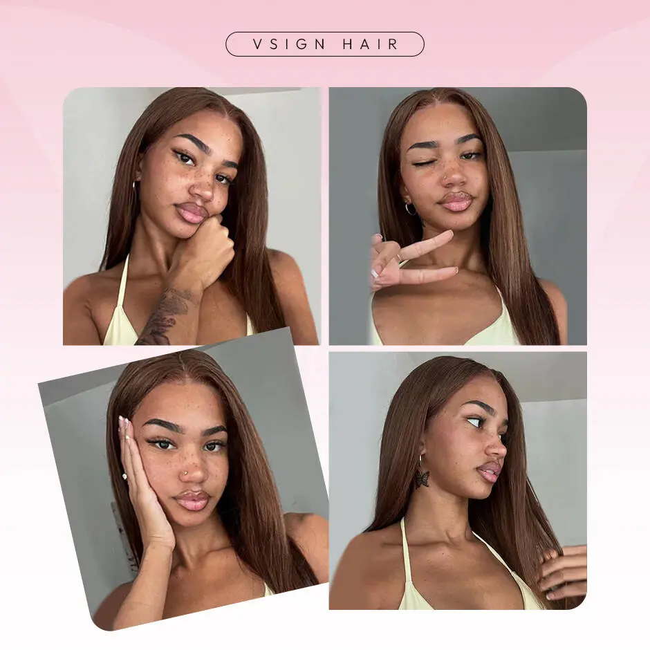 5. VSIGN Chocolate Brown #4 13*6 Drawstring HD Lace Front Wig Synthetic Heat Resistant Fiber Hand Tied Pre Plucked Hairline Glueless Wig