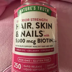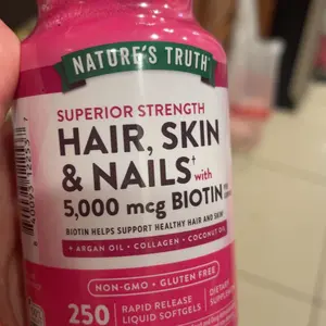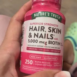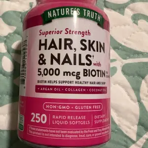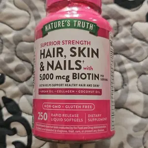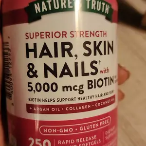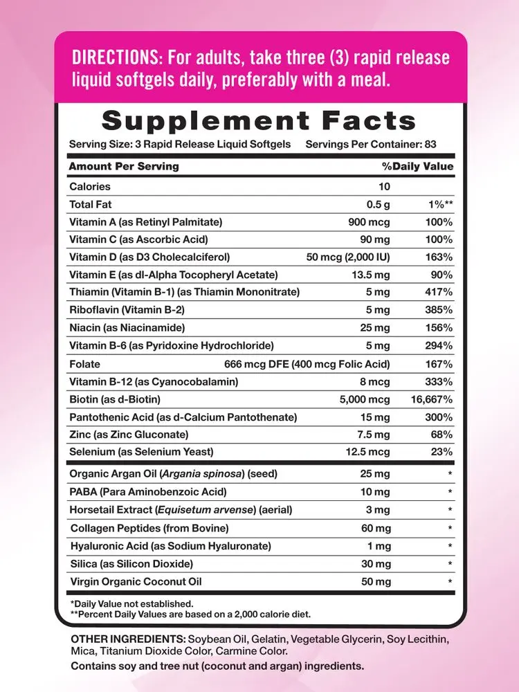 Unleash your inner beauty with these Hair, Skin & Nails softgels. Each serving delivers an array of beneficial vitamins and minerals, including 5,000 mcg of Biotin, plus Vitamin C, Vitamin E, and more. These softgels also provide additional support from Argan Oil, Collagen, and Coconut Oil.