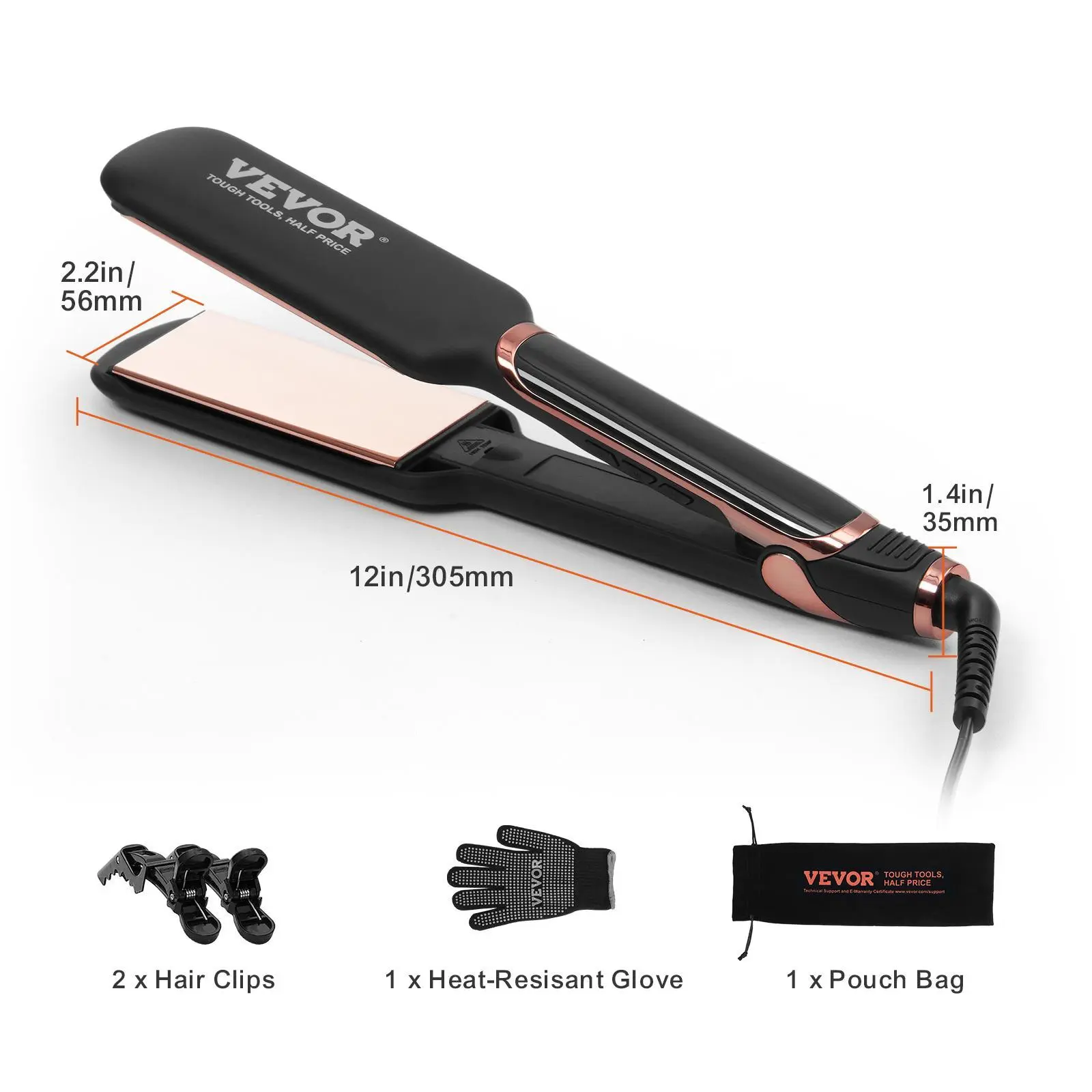 • Fast Heating, Lasting Style: Utilizing high-quality 2-inch titanium heating plate, VEVOR professional hair straightener heats up quickly and evenly, ensuring efficient and uniform heat distribution. Corrosion-resistant and durable, it provides optimal protection for every strand of hair, effortlessly creating smooth and straight hair.