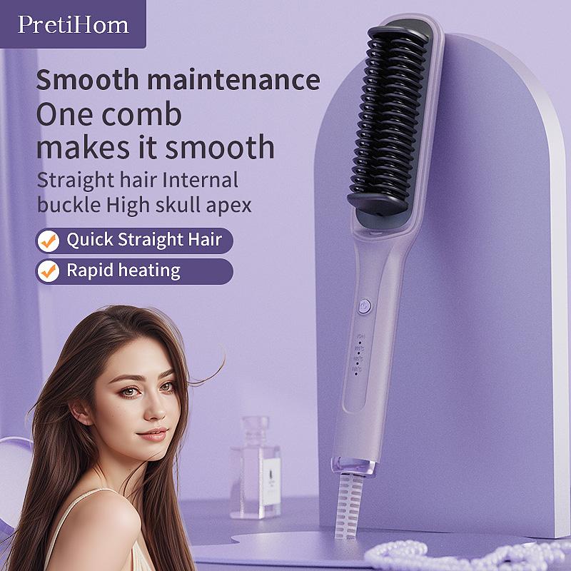 5. PretiHom-Hair Straightening Comb Styling Tool Anti-FrizzCurler Comfort Salon Negative lon Hair Brush StraighteningBrush Heated Hair Straightener