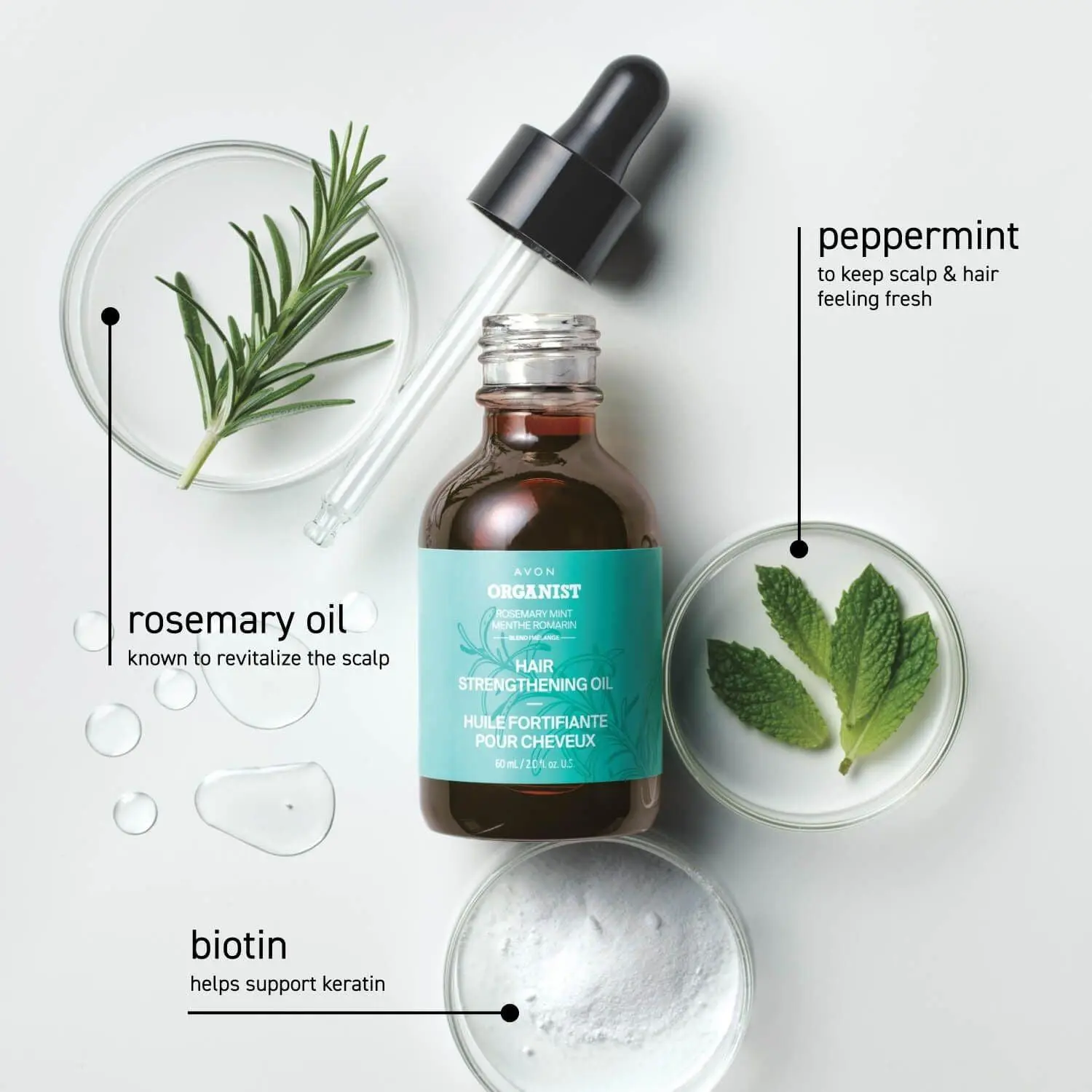 Known to help boost hair and scalp moisture and luster. Discover hair oil’s amazing benefits with our 2-in-1 daily-use oil for hair and scalp. With essential oils, 99% derived from plants, plus biotin. Rosemary and mint blend. Hair feels fortified, nourished and refreshed. 2 fl. oz. ABOUT ORGANIST ROSEMARY MINT COLLECTION Rosemary is known to revitalize the scalp and help support thicker, fuller-looking hair. Peppermint adds a refreshing tingle and cooling sensation to your scalp while helping to keep your hair and scalp looking healthy. RESULTS• Over 80% saw healthier hair in one week*• Visibly strengthen hair in just two weeks †*Evaluated by Ellead (HUT Study), Organist Rosemary Mint Hair Strengthening Oil when used with Organist Rosemary Mint Shampoo, Conditioner, Tonic† Based on the combined use of Organist Rosemary Mint Collection (Shampoo+ Conditioner + Tonic + Oil), individual results may vary. Evaluated by Korea Institute of Dermatological Sciences (10/24–12/22, 2023), Organist Rosemary Mint Hair Strengthening Oil KEY INGREDIENTS • Rosemary – Known to revitalize the scalp and help support thicker-, fuller-looking hair• Mint – Helps to keep your hair and scalp feeling refreshed and looking healthy• Biotin – An essential vitamin that helps support keratin for visibly thicker, healthy-looking hairTO USE• Apply Organist Hair Strengthening Oil to scalp, massage oil in with fingers and comb through to ends of hair. • Leave in and style as desired. • Apply a small amount to scalp and comb through to ends.