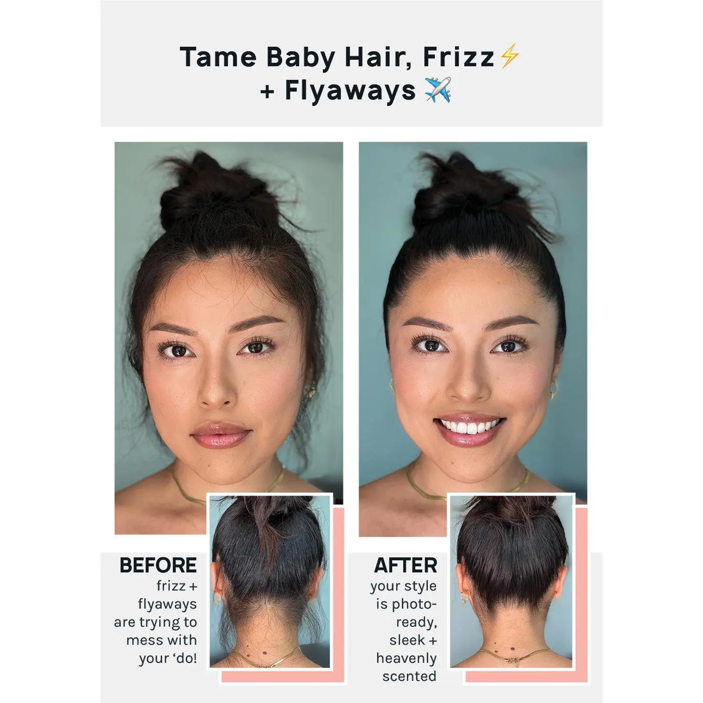 Awesome little hair tamer! Doesn’t leave hair sticky but does tame the baby hairs!