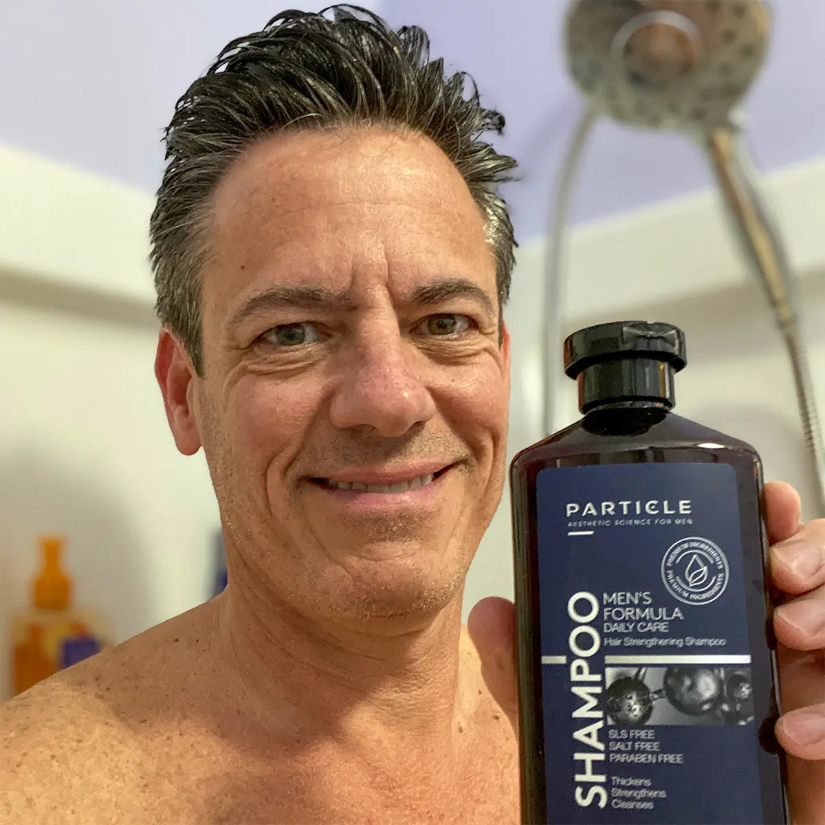 Particle's Shampoo is SLS free, paraben free, and salt free, ensuring a gentle yet effective cleanse.