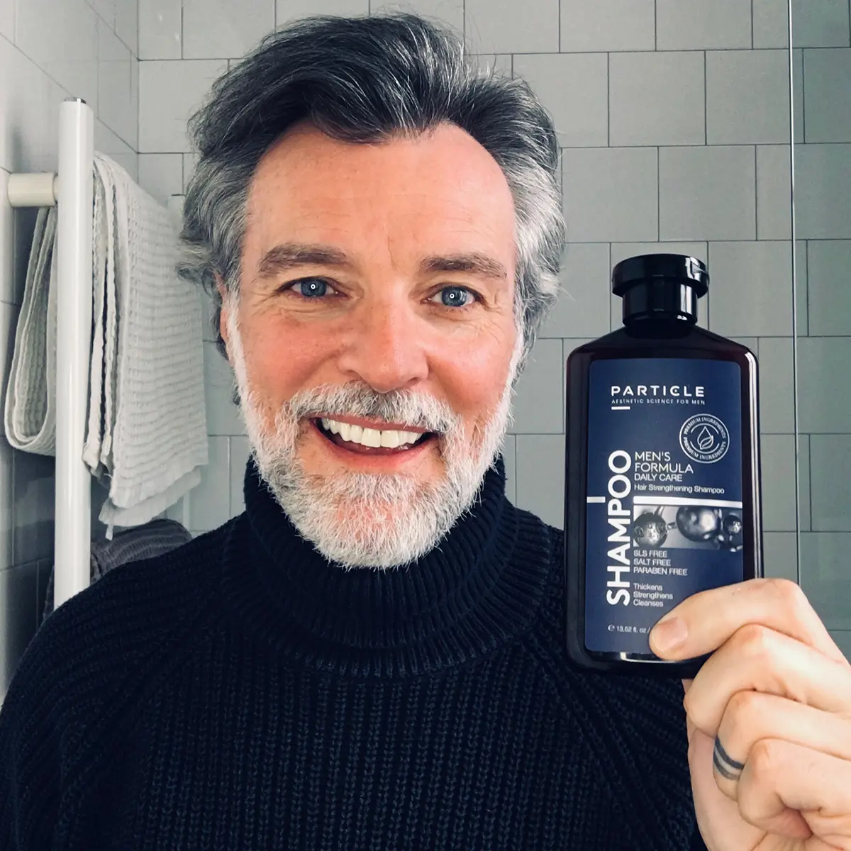 Experience the confidence of a thicker, stronger head of hair with Particle's cutting-edge shampoo. Perfect for daily use and tailored to meet the needs of modern men.