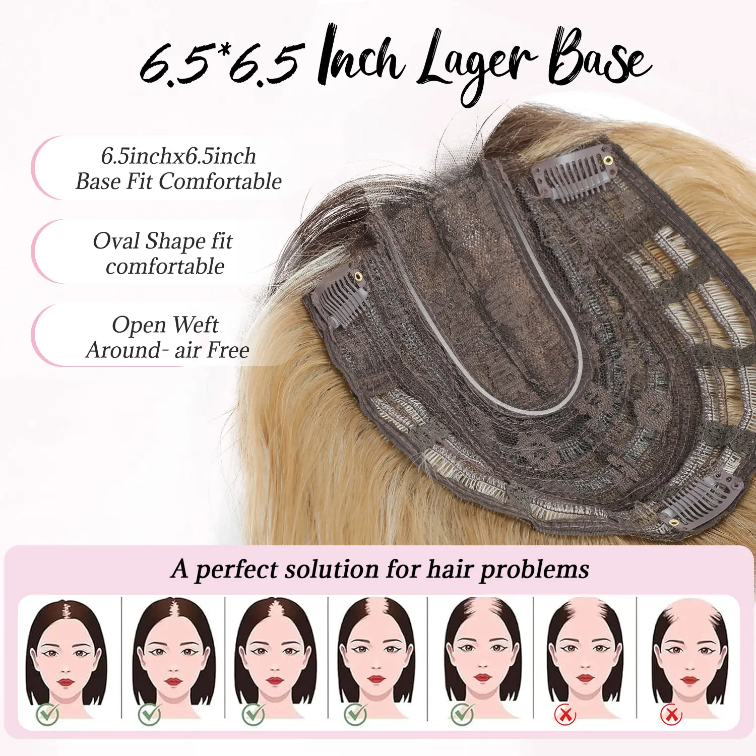 🌟 Lightweight and Natural 🌟- 16-inch hair topper is lighter and more breathable.- Suitable for daily wear with a breathable silk base and premium clips.