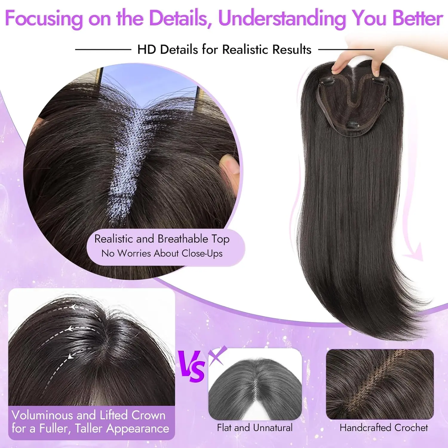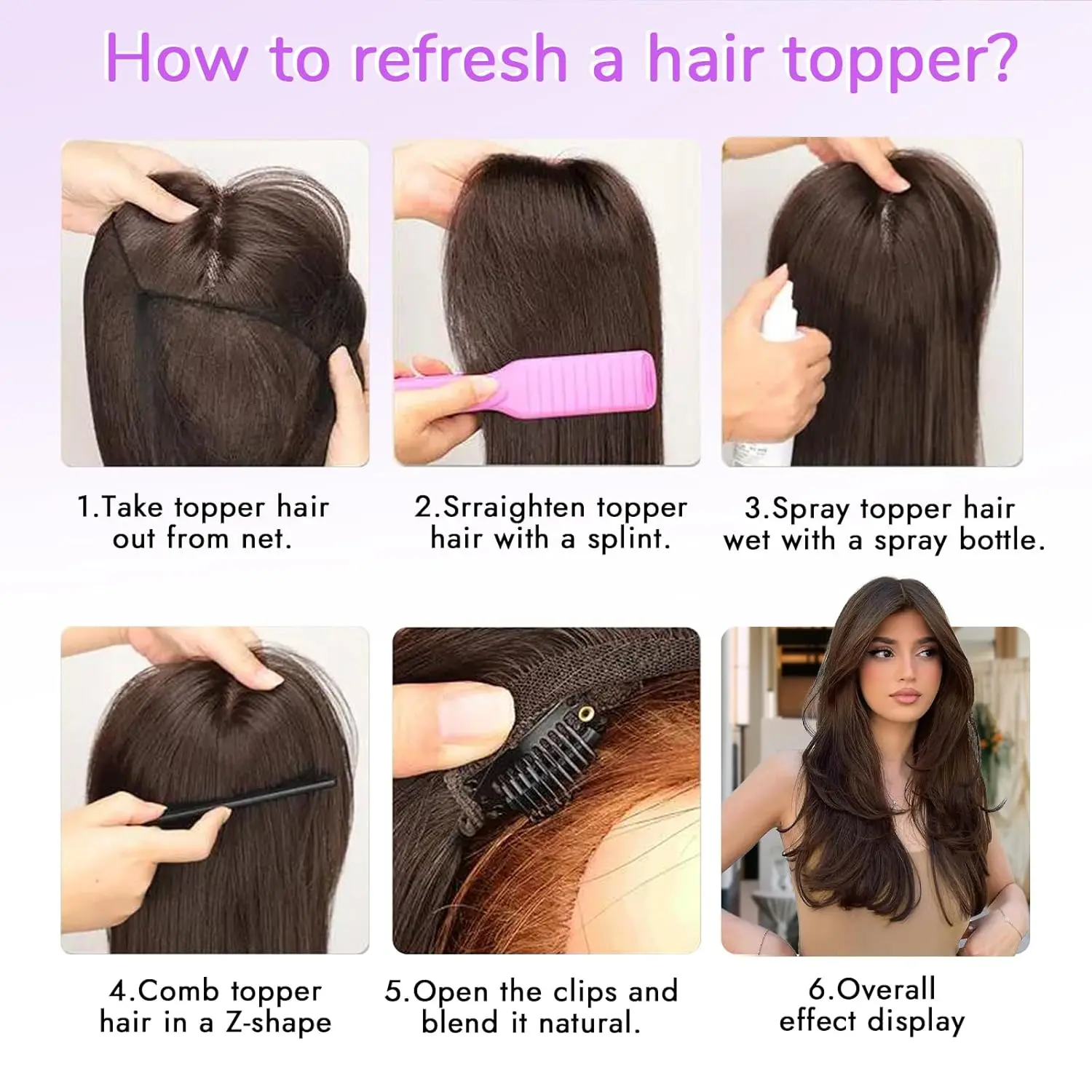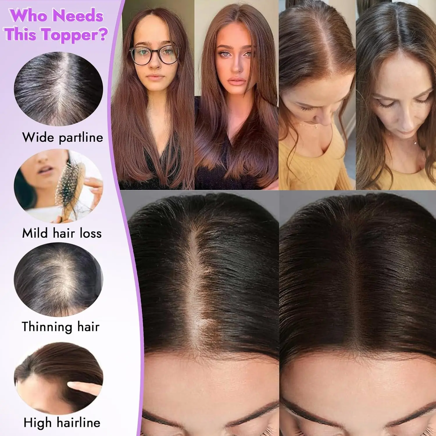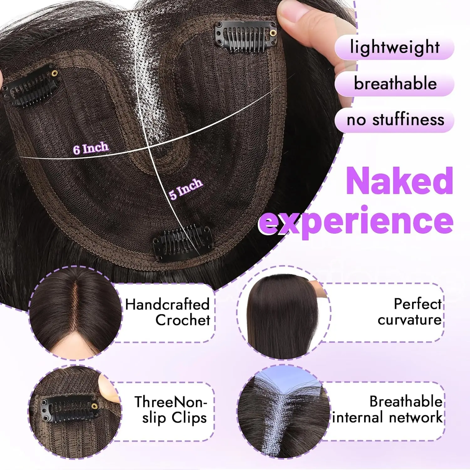 Second topper, first one I got a black one with bangs now I get this no bangs and dark brown color, beautiful and very convenient!