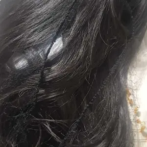 Product hair is nice a fluffy. Not bone straight. Looks like human hair wig a bit of dry shampoo. Black knots with a sheer lace, workable with makeup. Has a bit of a curl at the end. Look like a full wig almost has a good amount of hair. Very light weight on my head