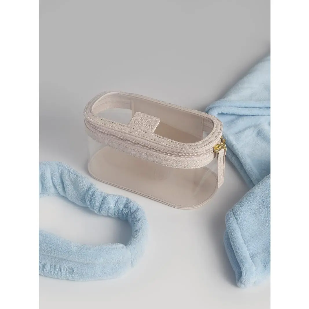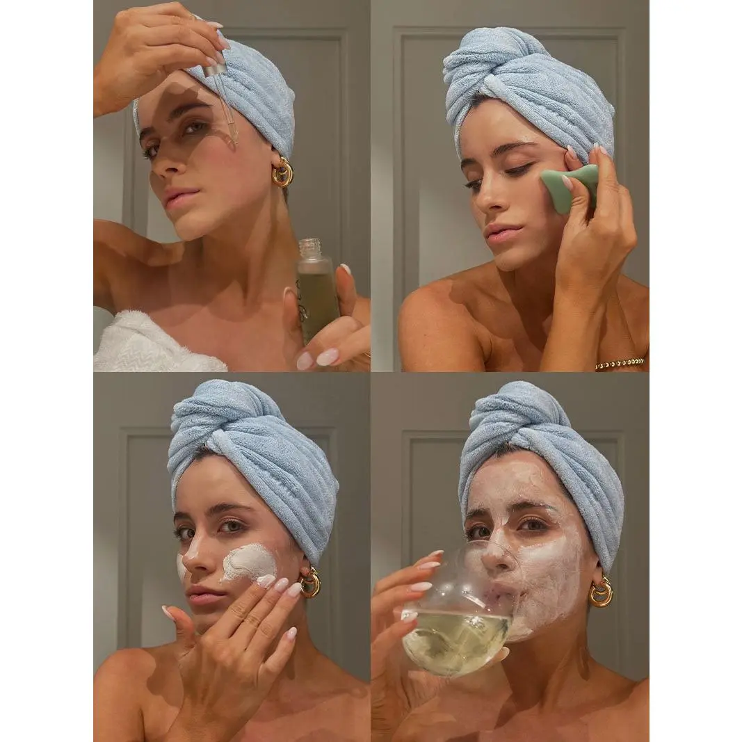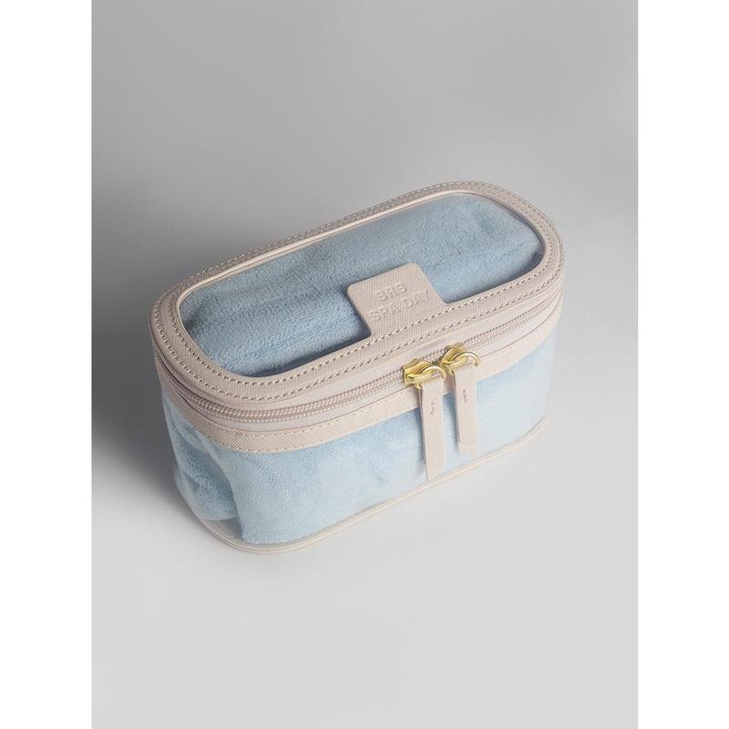 The kit includes a Microfiber Hair Towel to minimize dry time and prevent frizz, a Spa Headband to keep your hair back while you mask and moisturize, and a Vegan Saffiano Leather Case to store your skin care.
